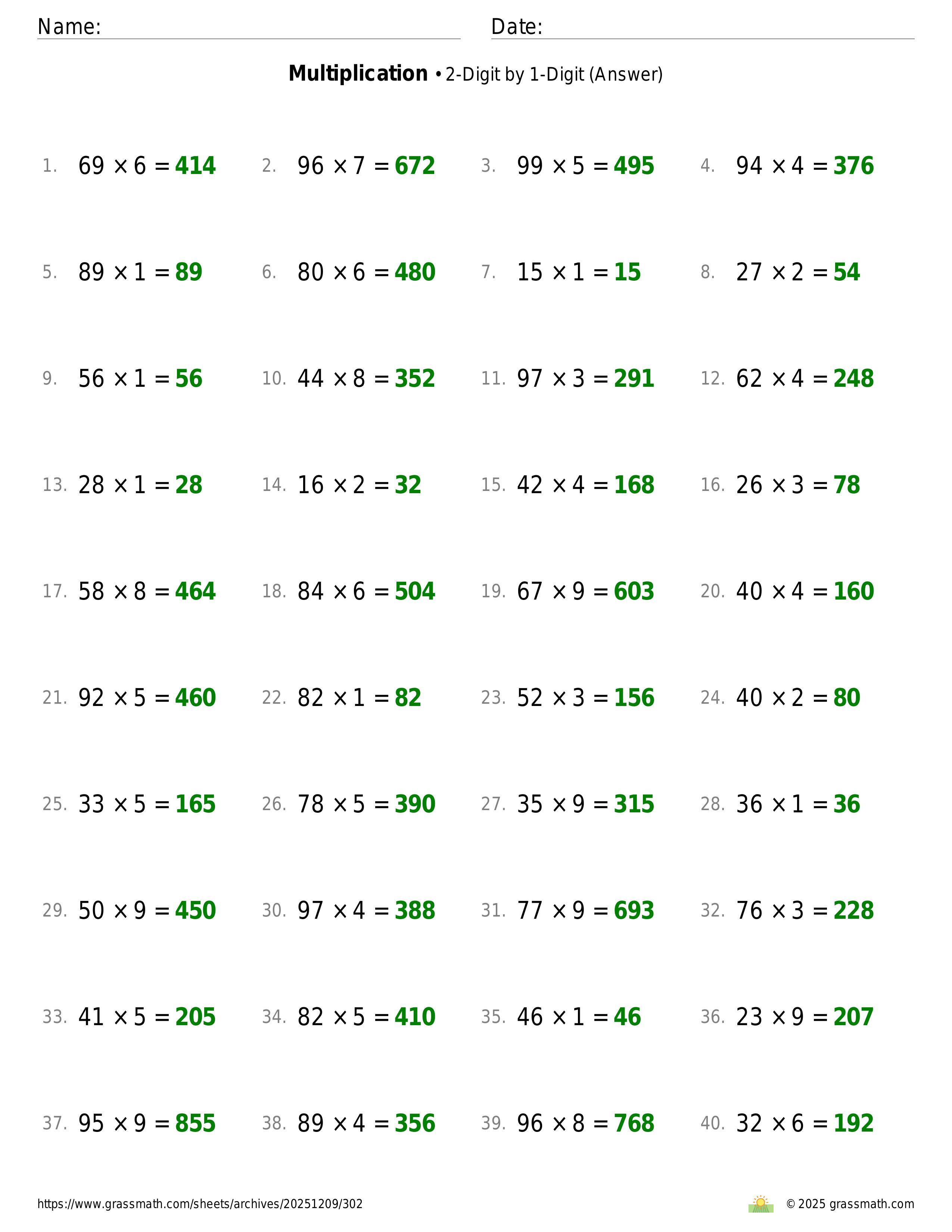 Multiplication 2-Digit by 1-Digit