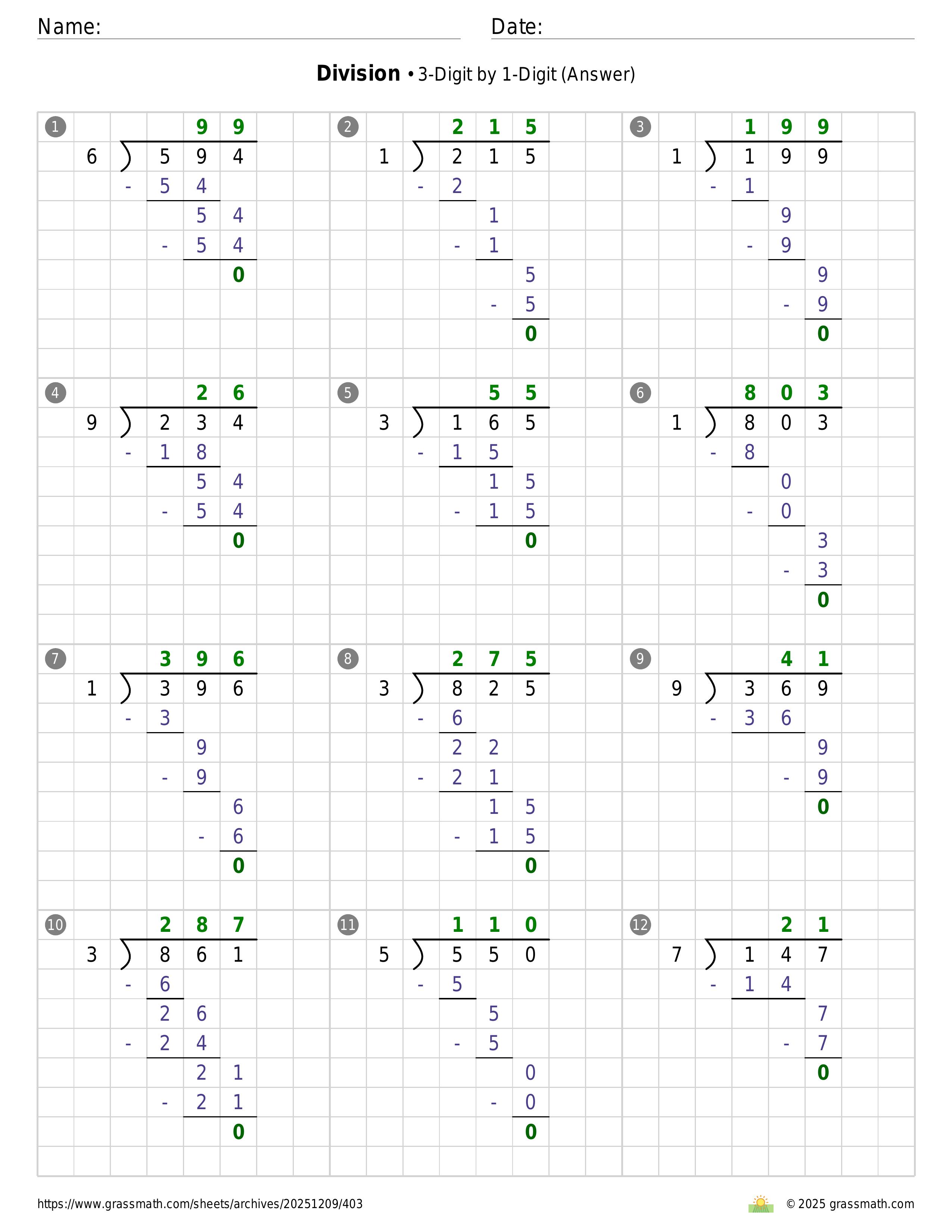 Division 3-Digit by 1-Digit