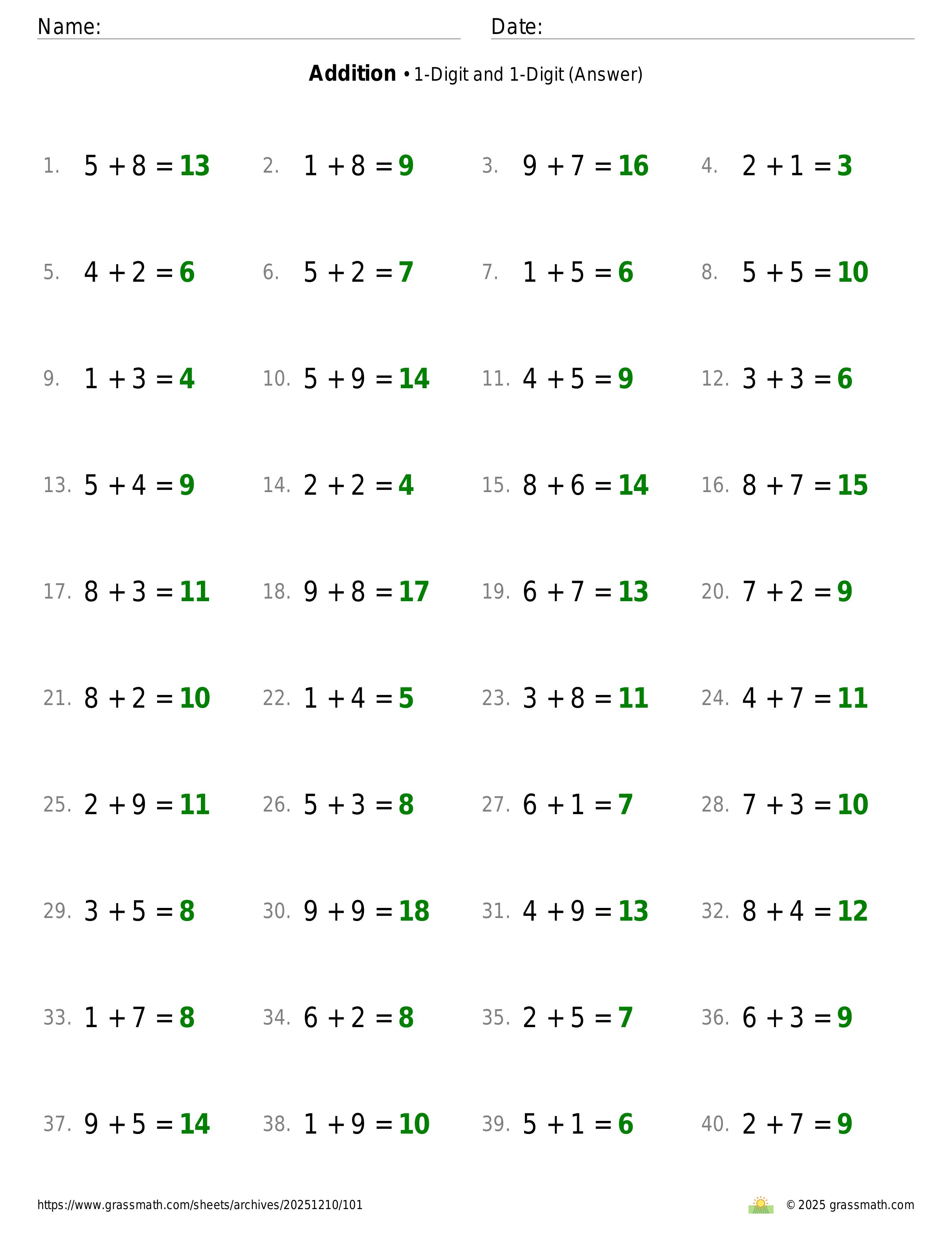 Addition 1-Digit and 1-Digit