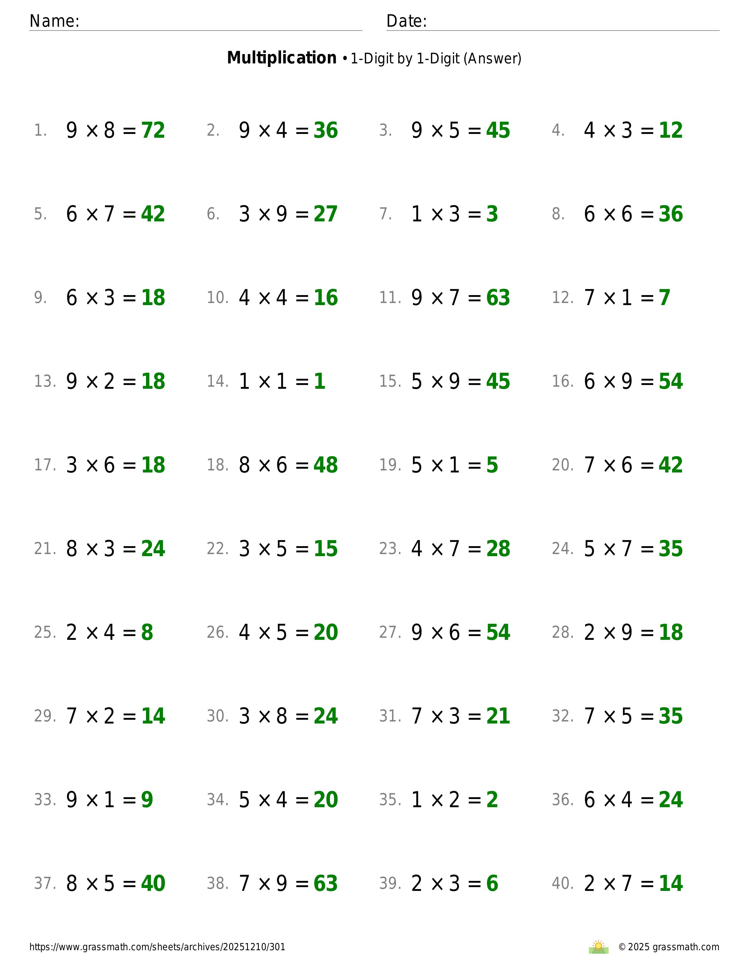 Multiplication 1-Digit by 1-Digit