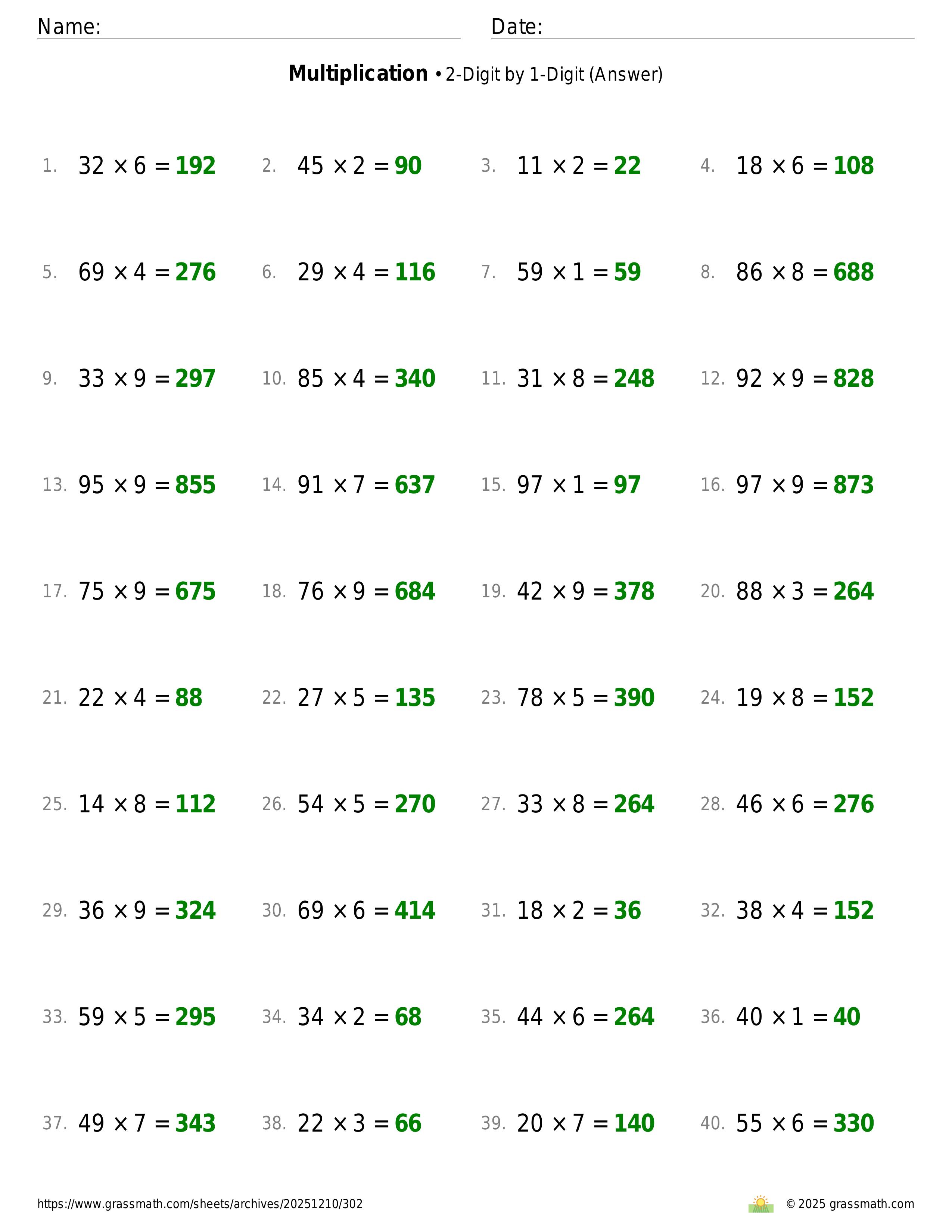 Multiplication 2-Digit by 1-Digit