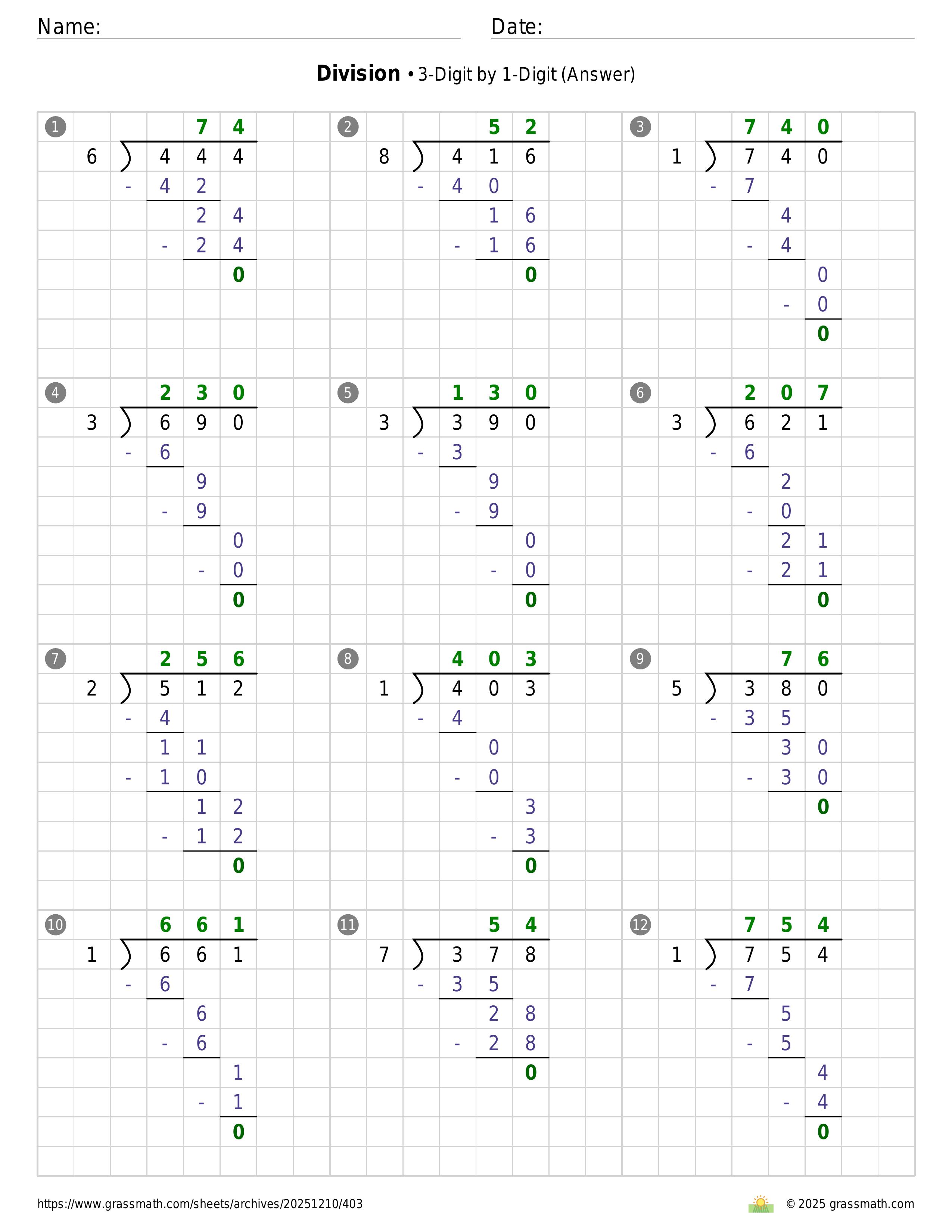 Division 3-Digit by 1-Digit