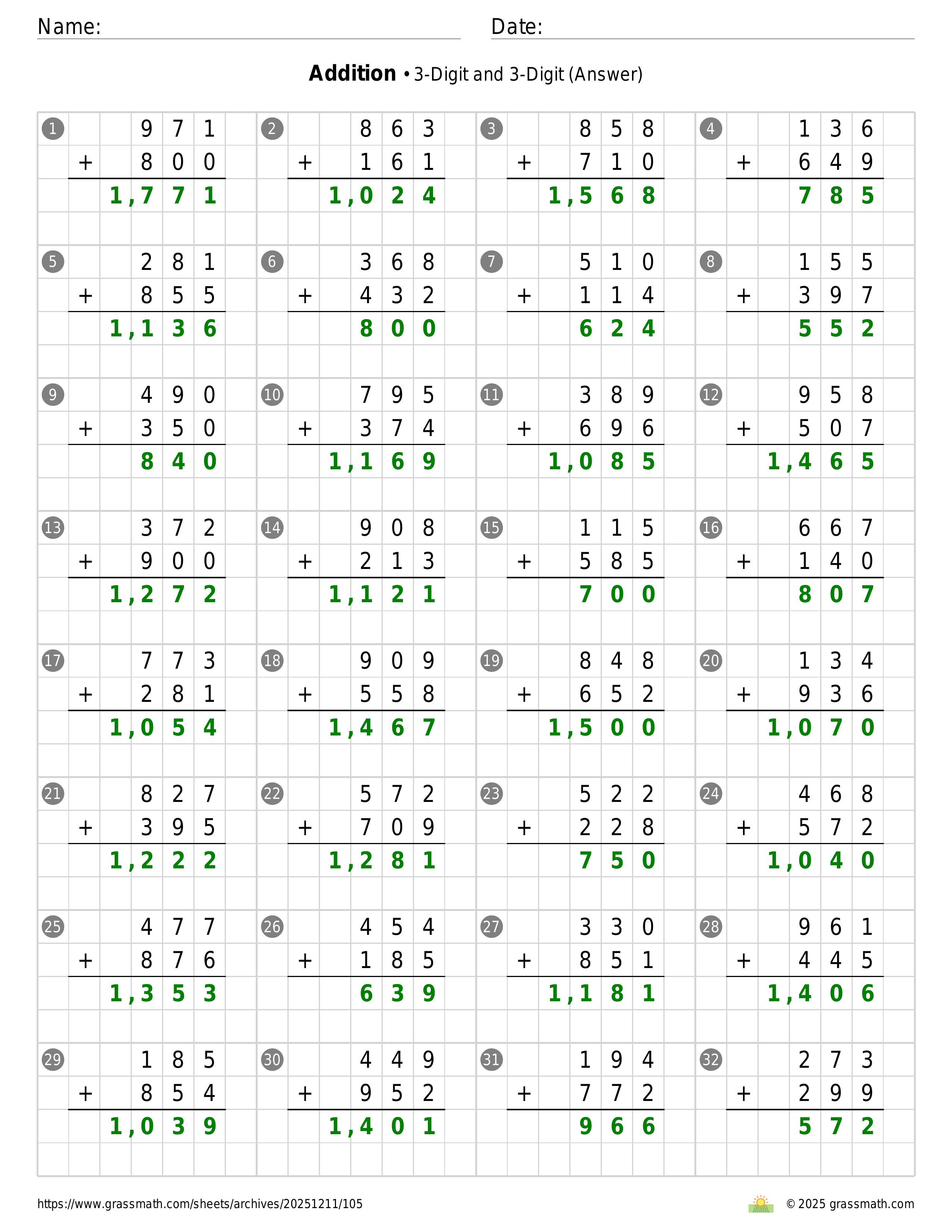 Addition 3-Digit and 3-Digit