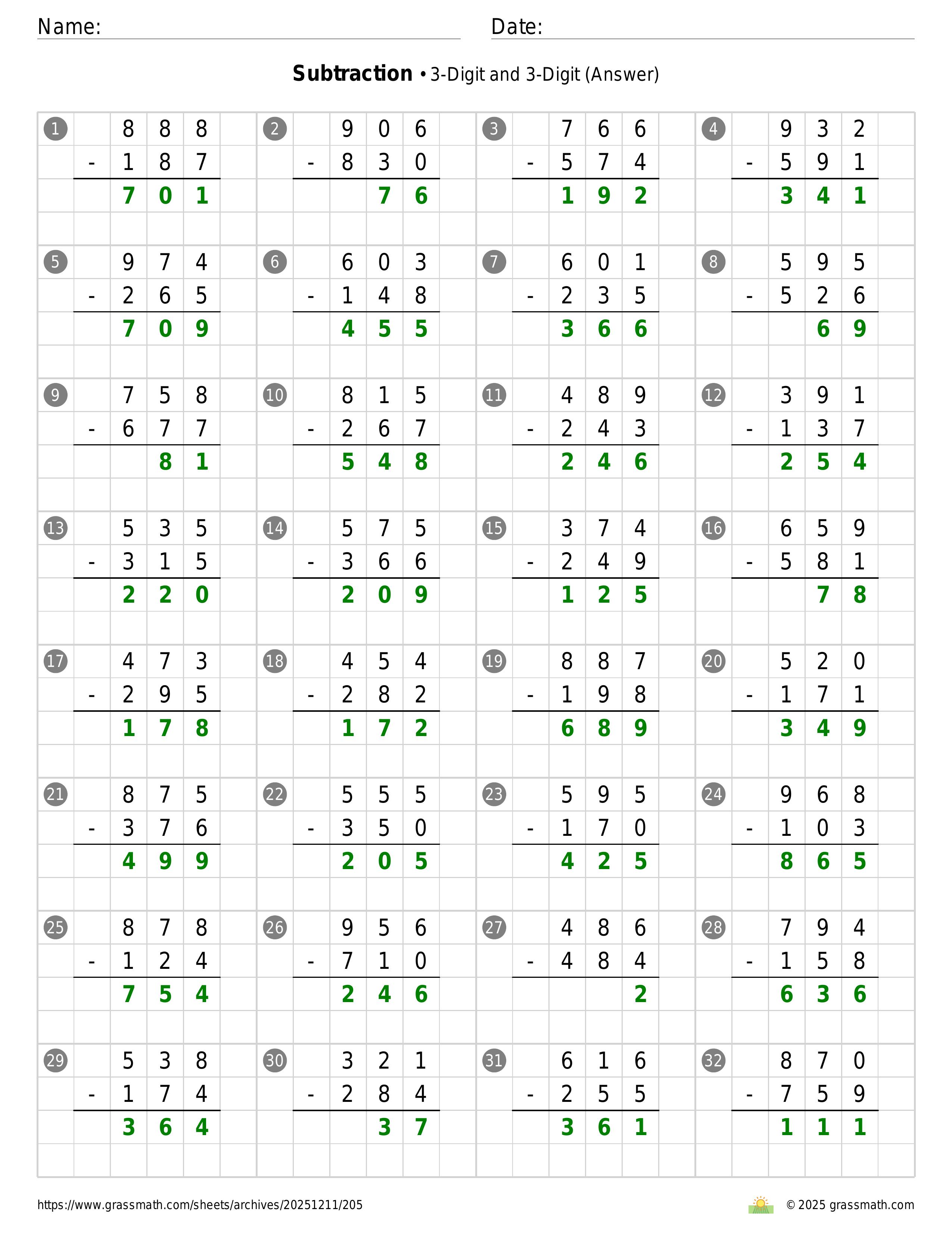 Subtraction 3-Digit and 3-Digit