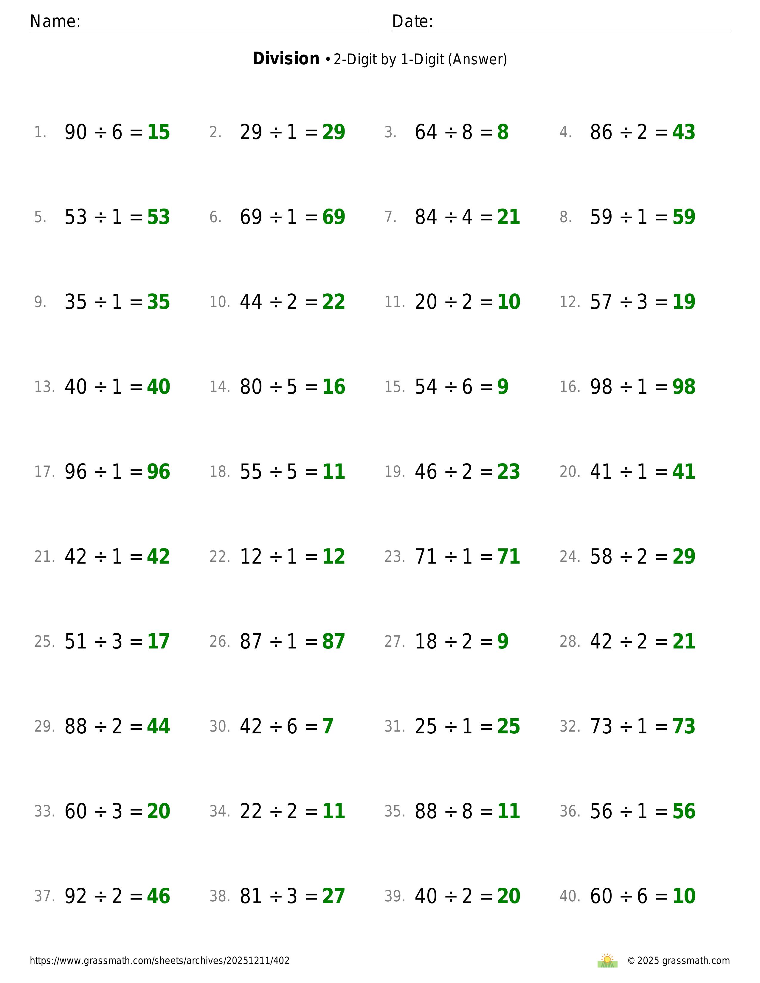 Division 2-Digit by 1-Digit
