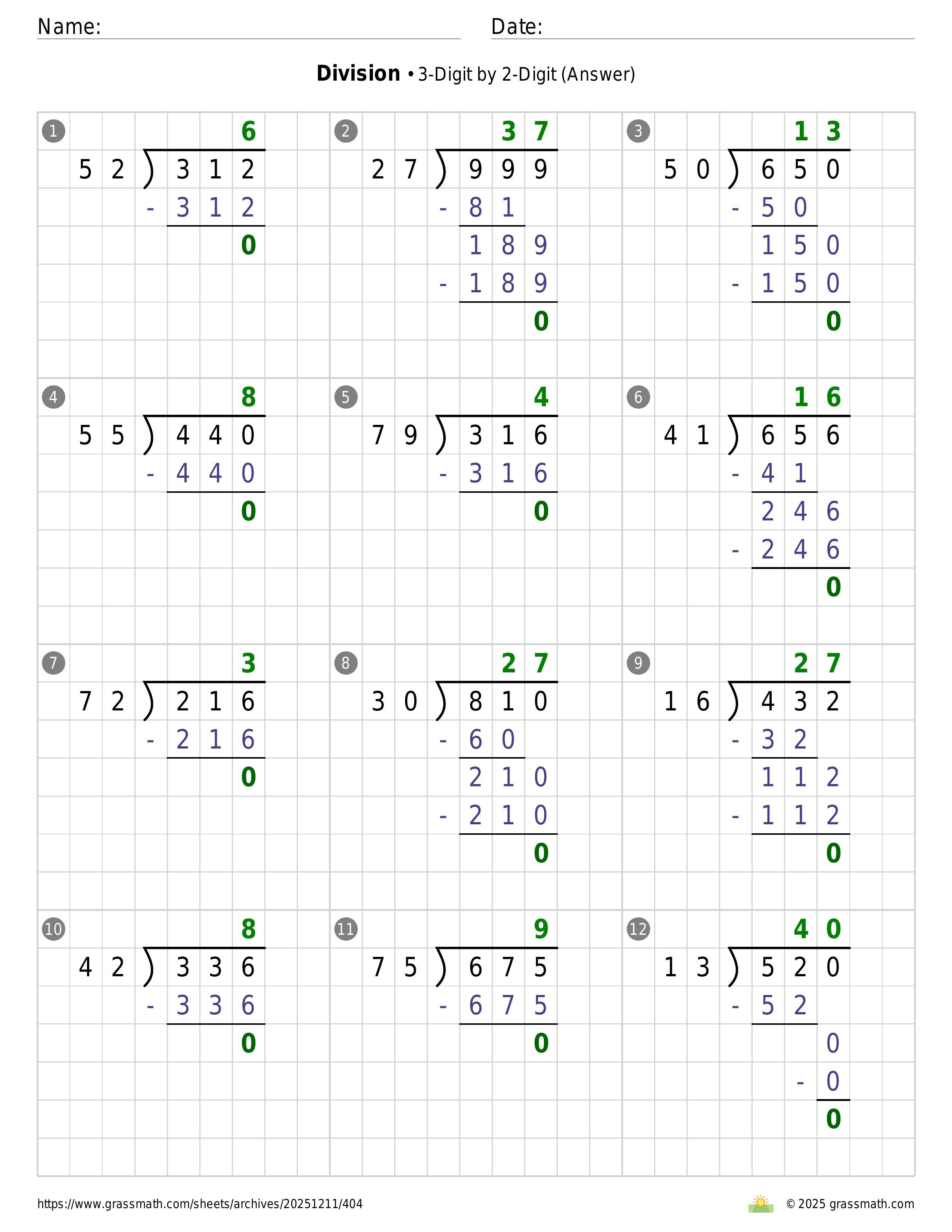 Division 3-Digit by 2-Digit