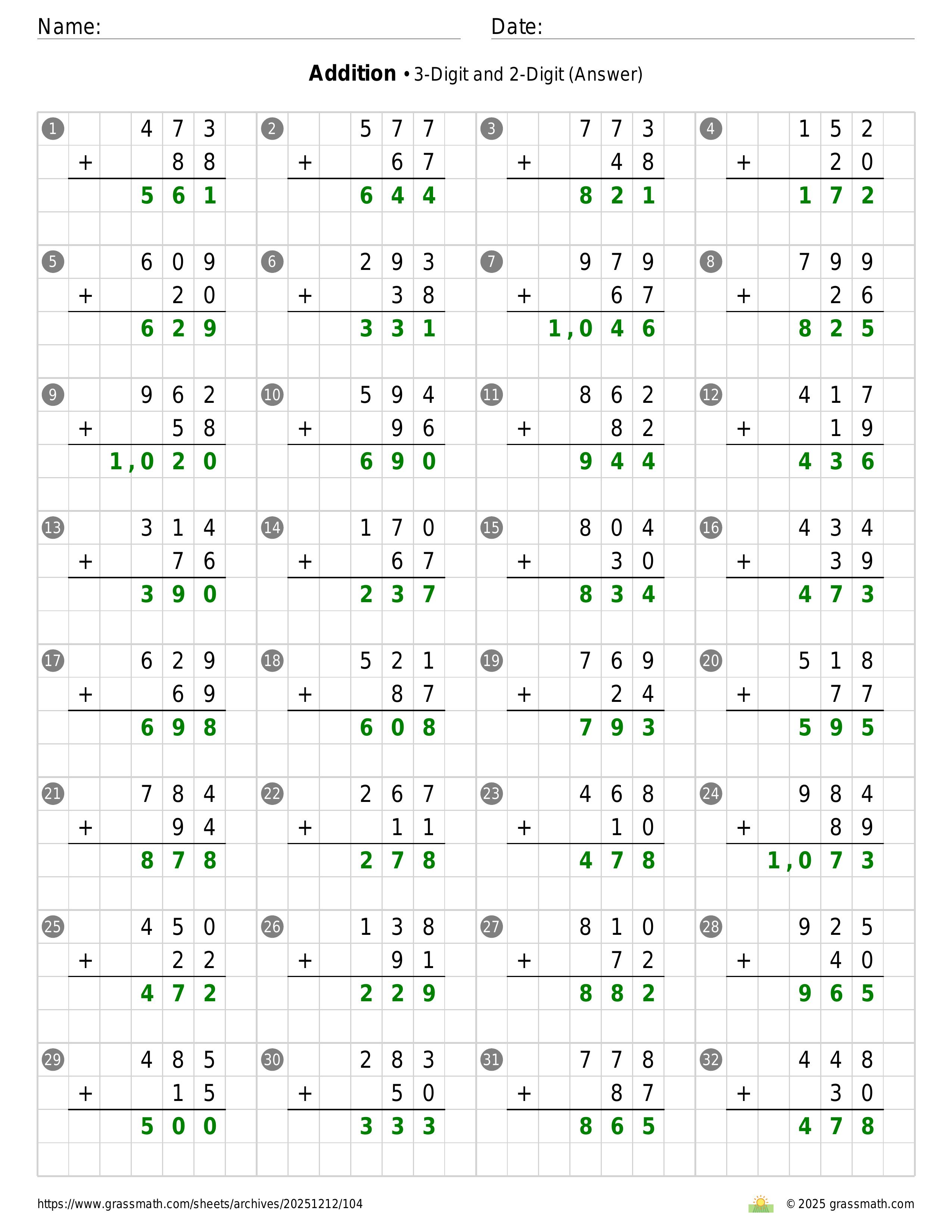 Addition 3-Digit and 2-Digit