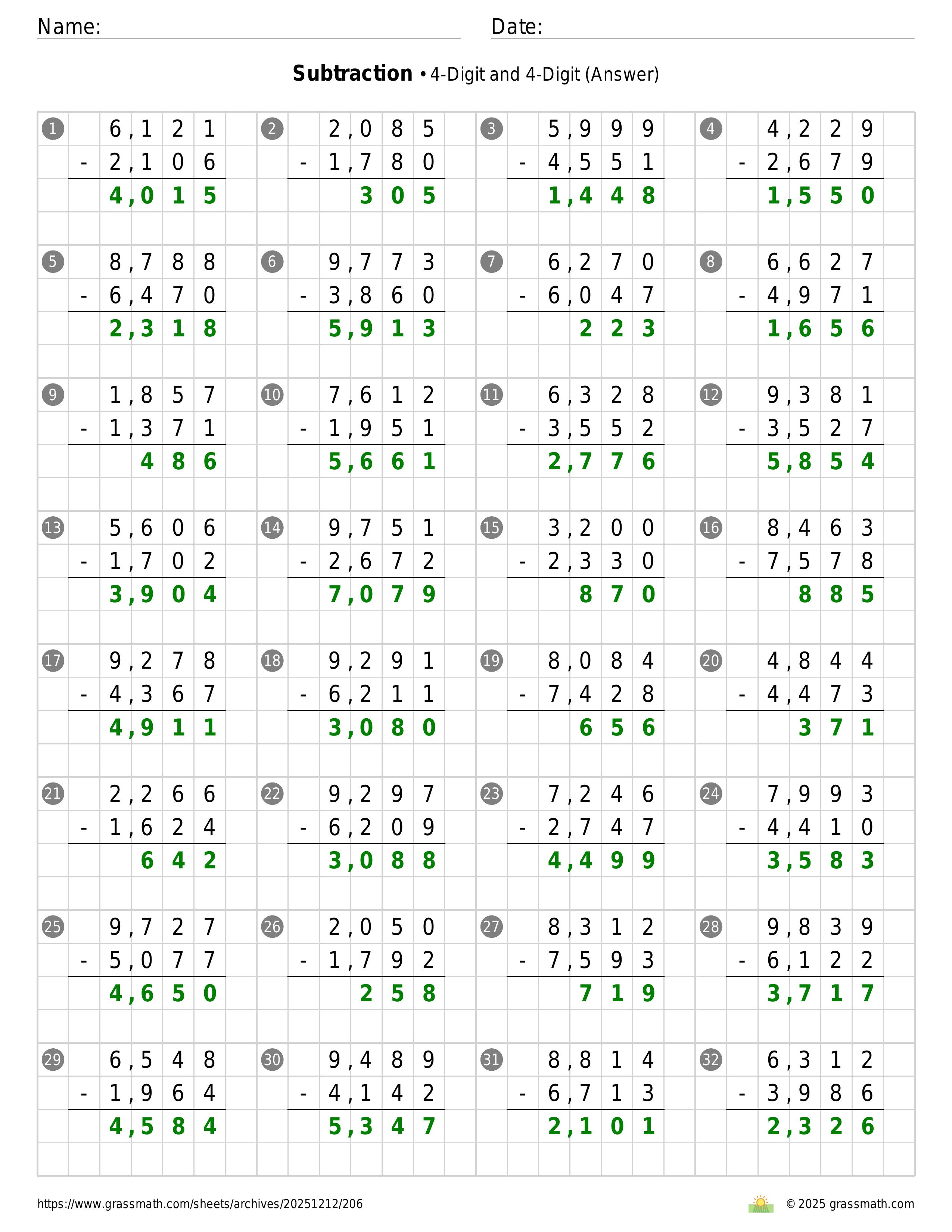 Subtraction 4-Digit and 4-Digit