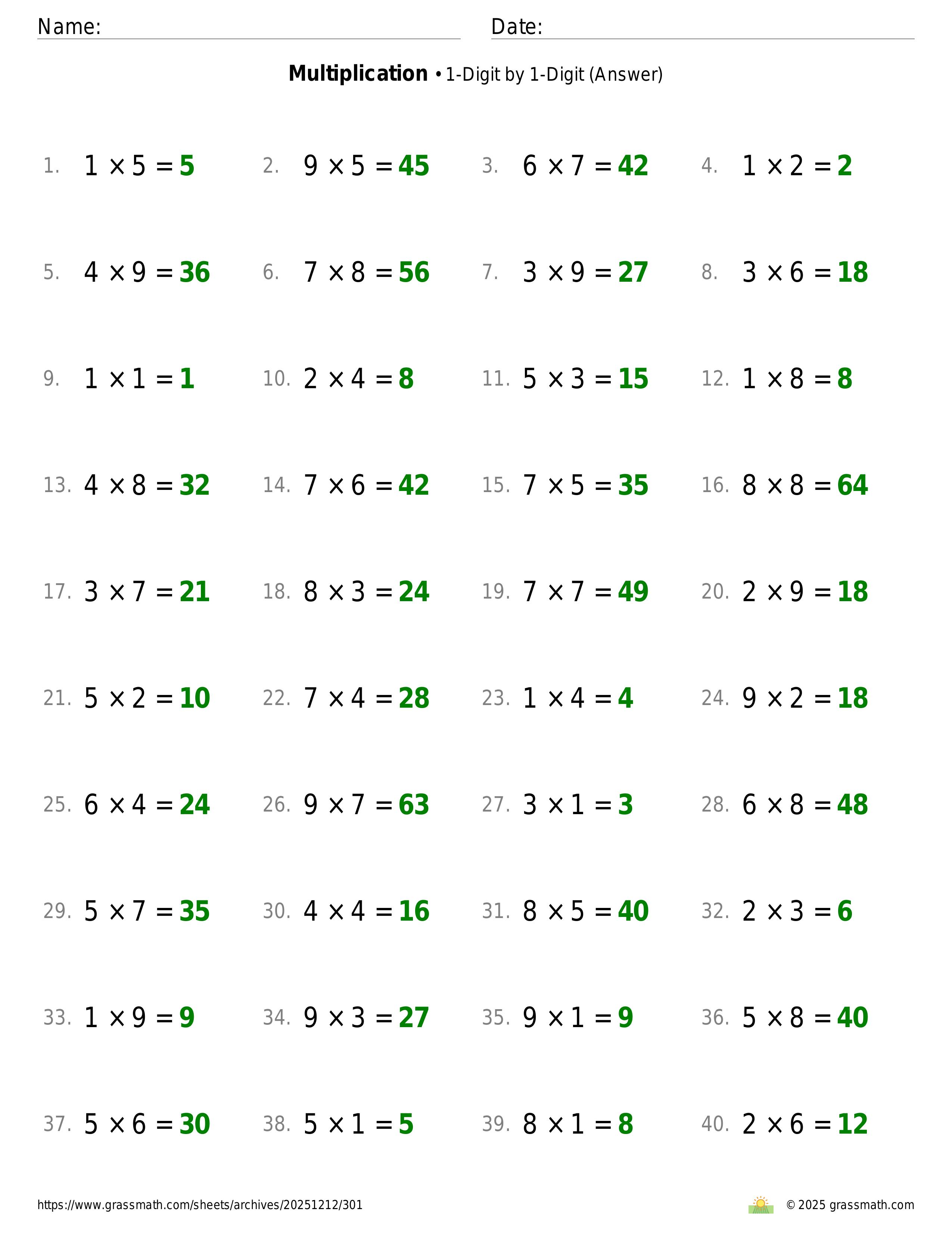 Multiplication 1-Digit by 1-Digit