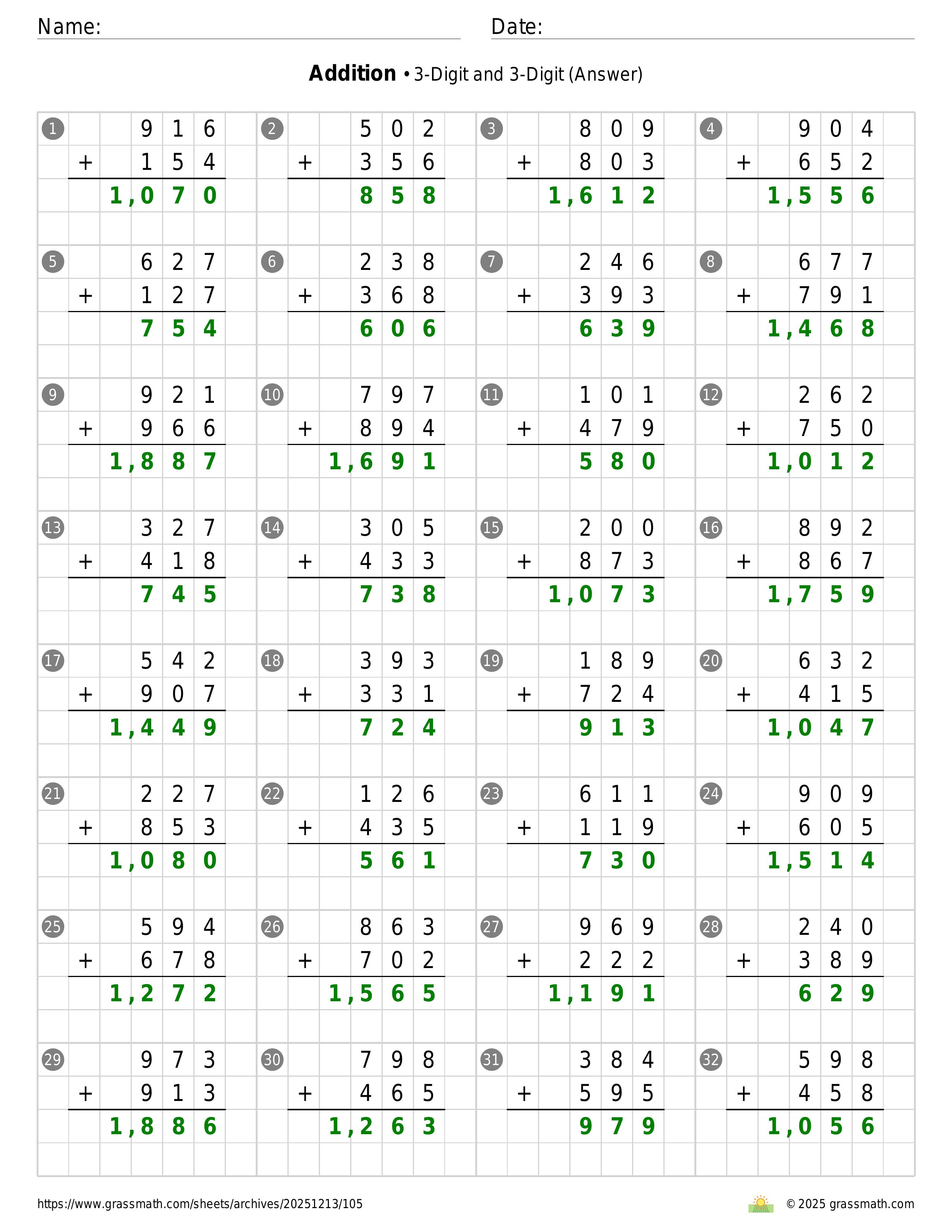 Addition 3-Digit and 3-Digit