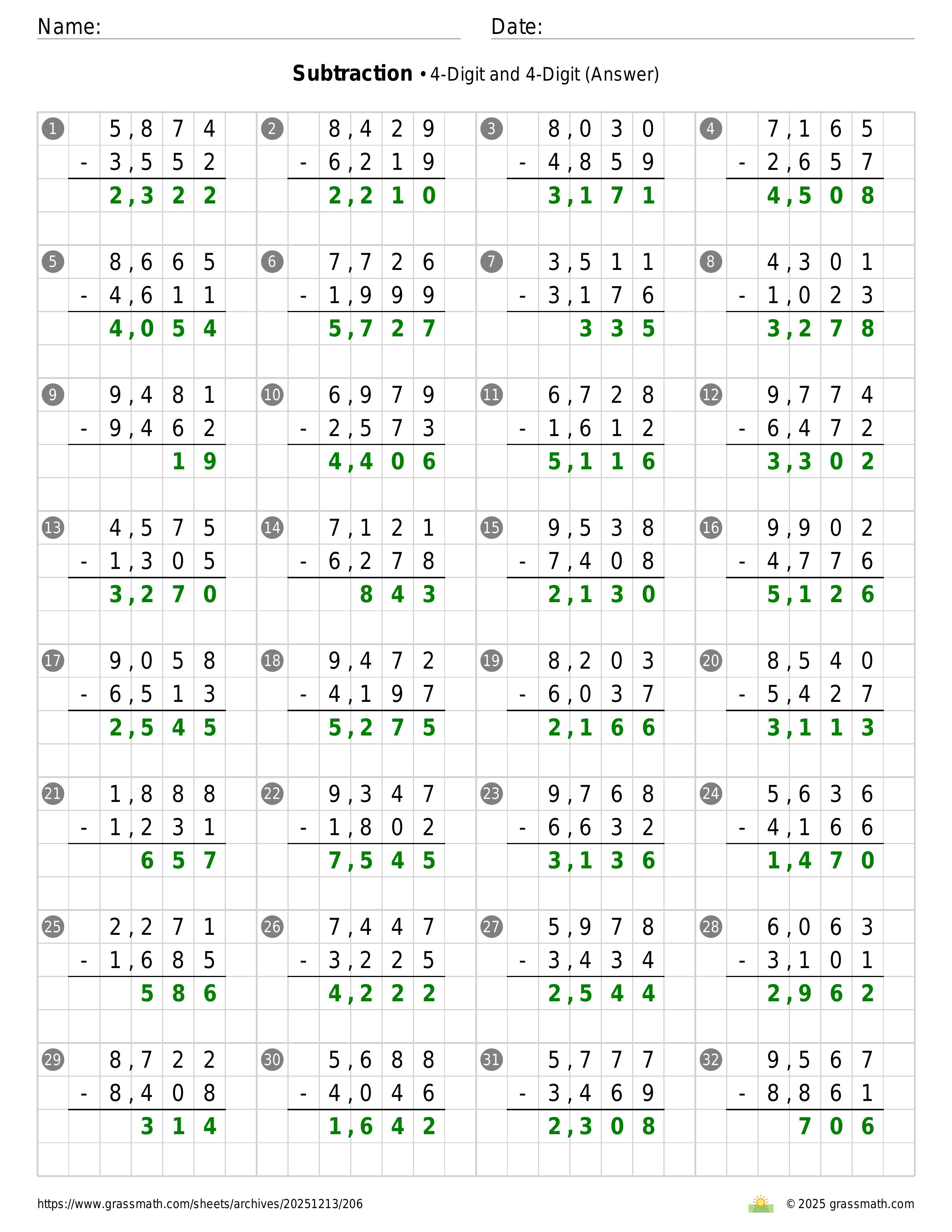 Subtraction 4-Digit and 4-Digit