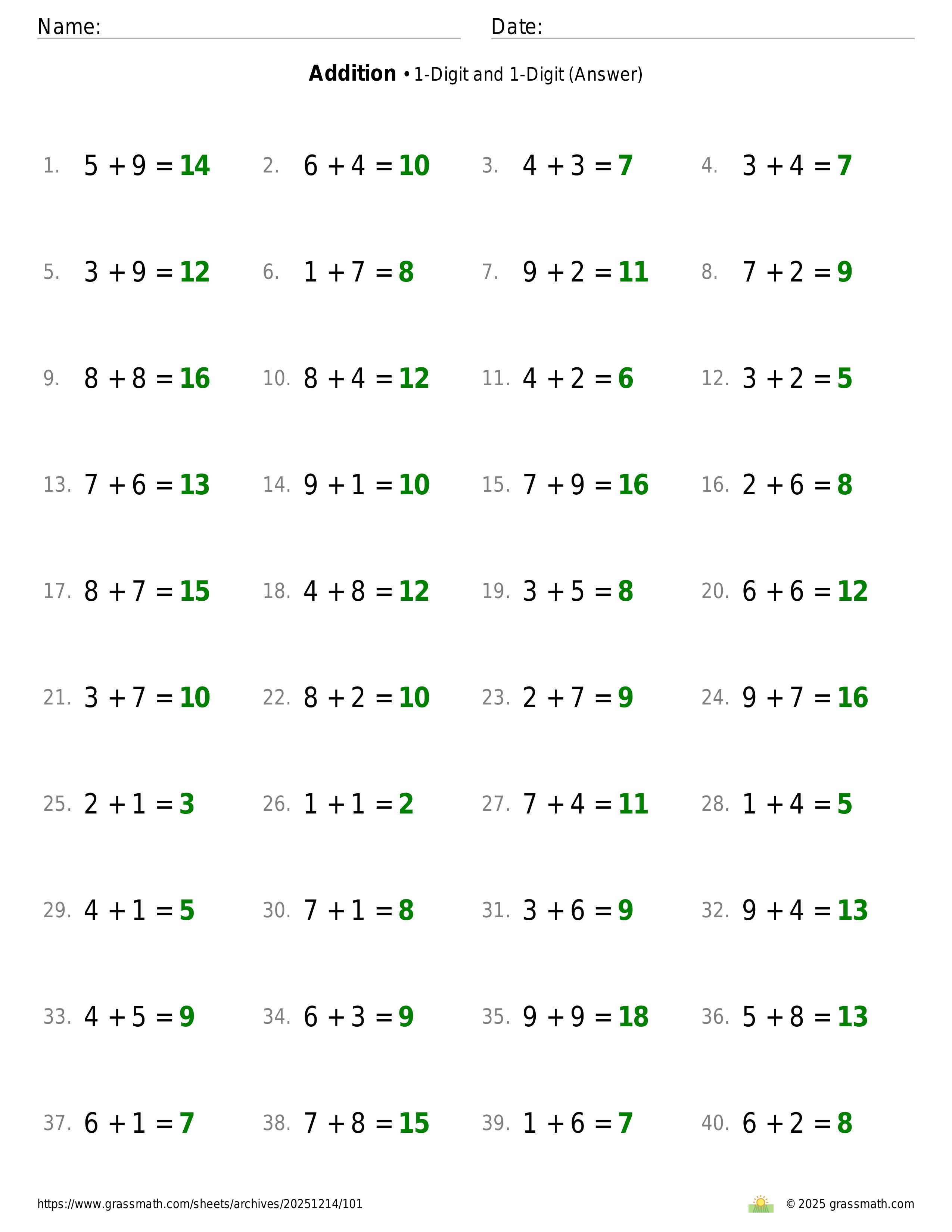 Addition 1-Digit and 1-Digit