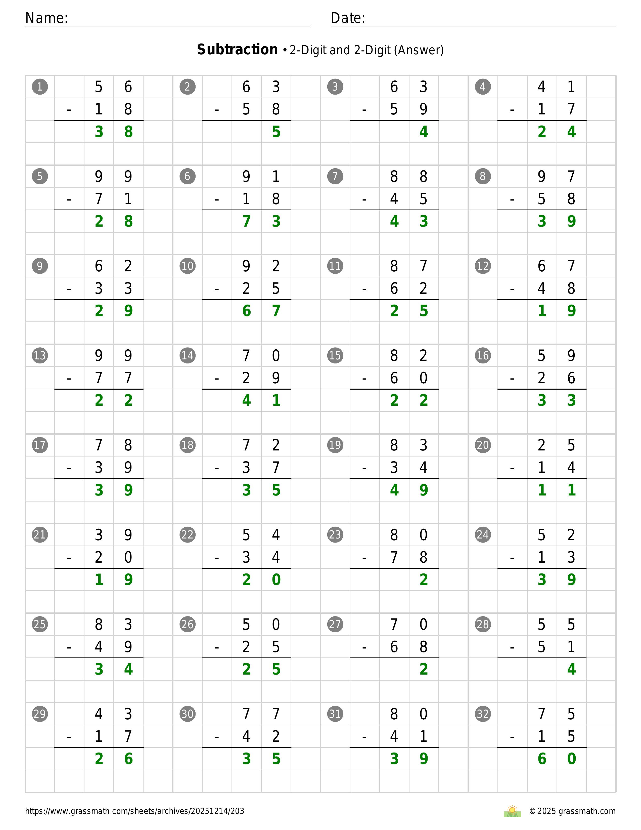 Subtraction 2-Digit and 2-Digit