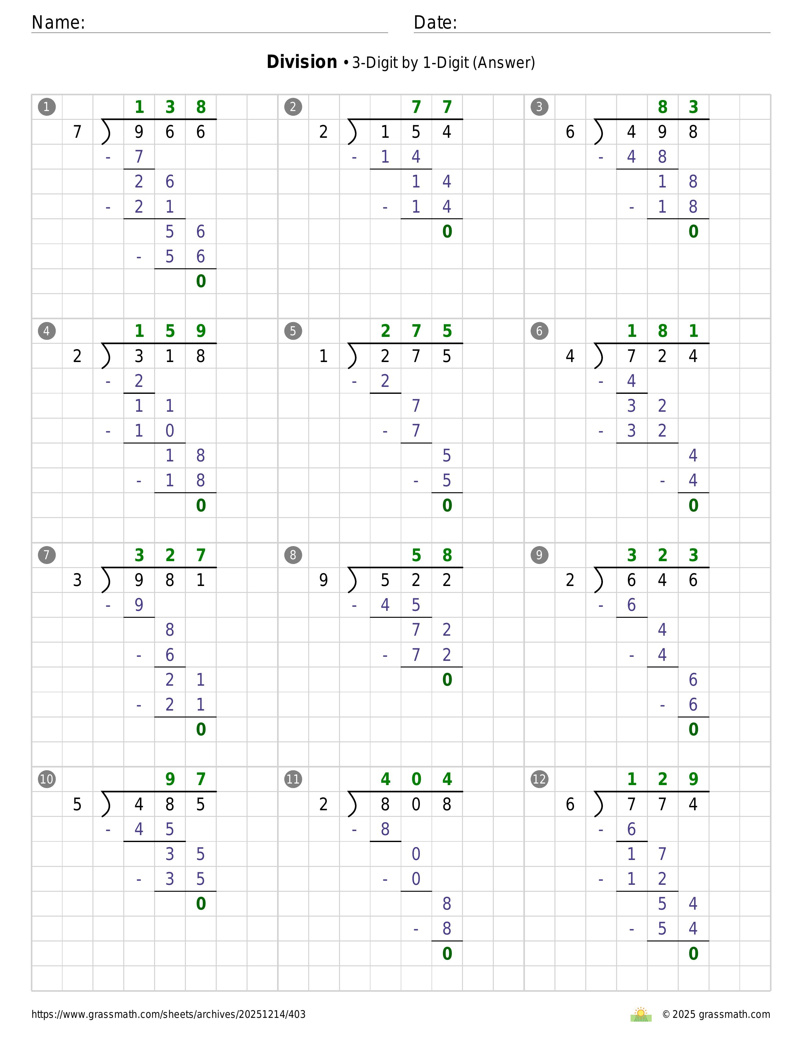 Division 3-Digit by 1-Digit