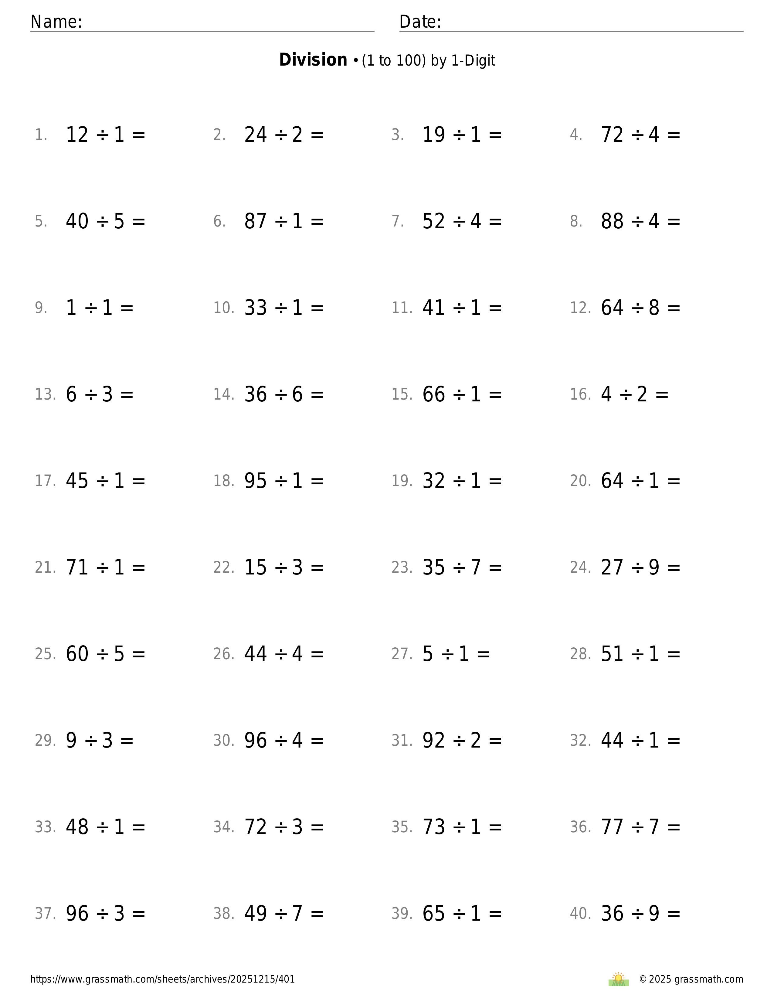 3-Digit by 1-Digit