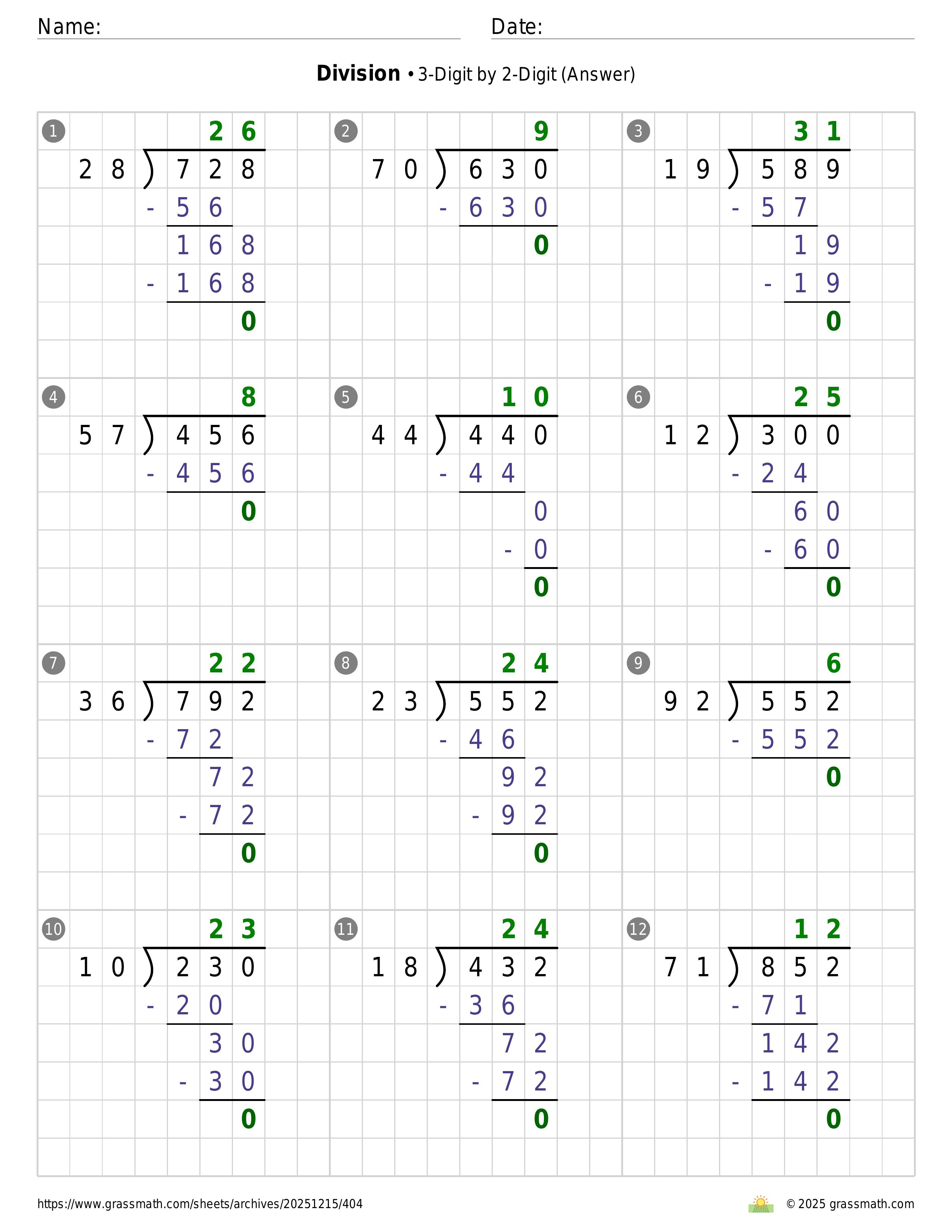 Division 3-Digit by 2-Digit