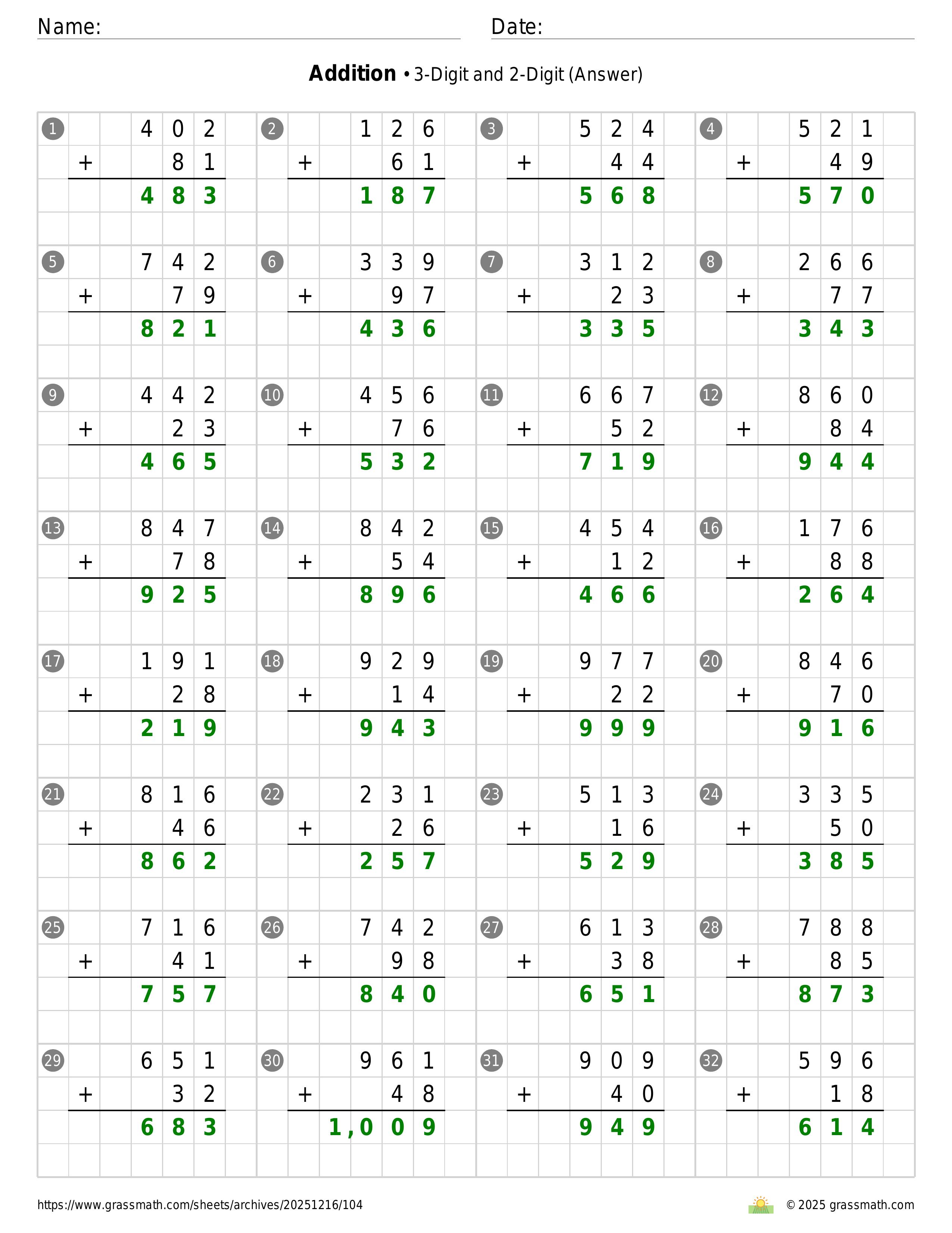 Addition 3-Digit and 2-Digit