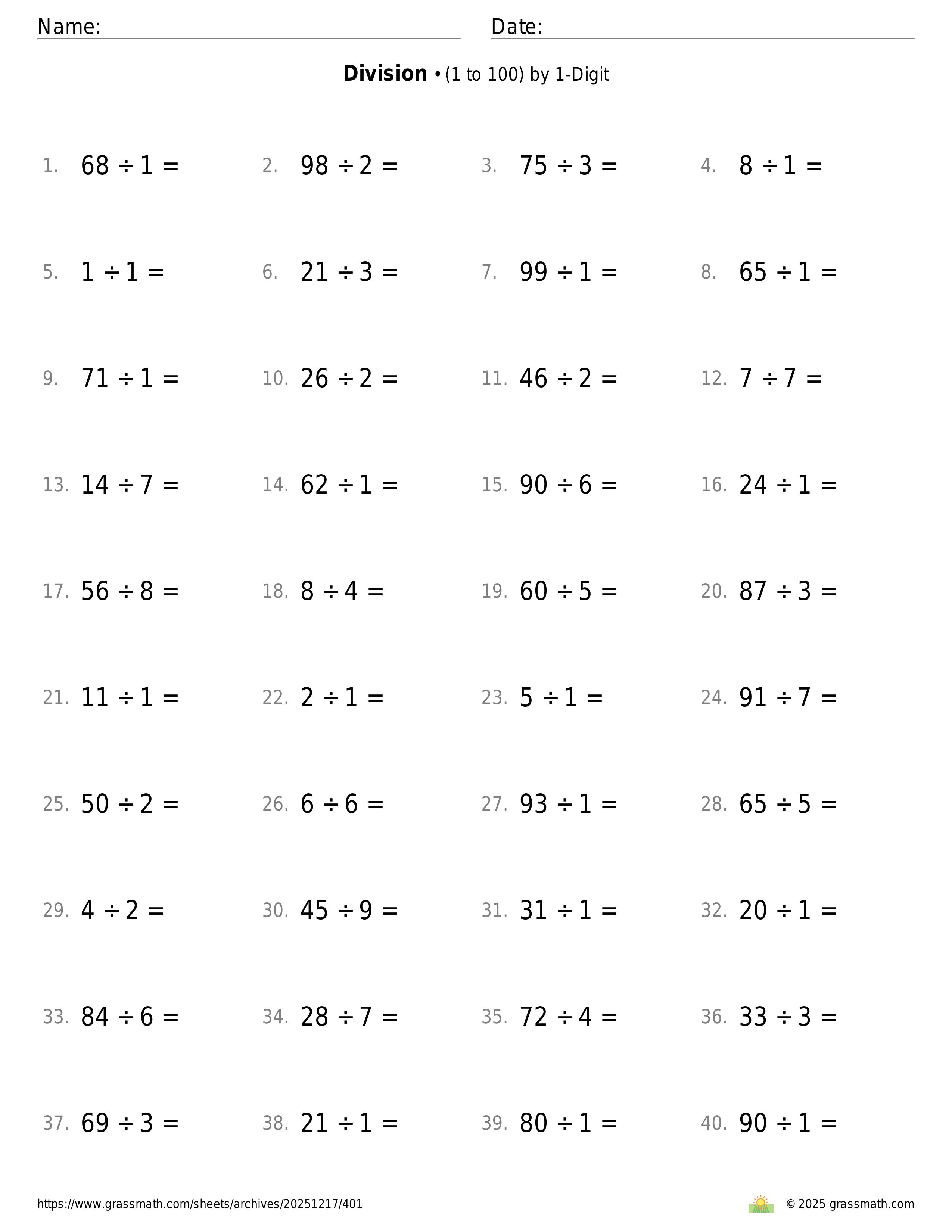 3-Digit by 1-Digit