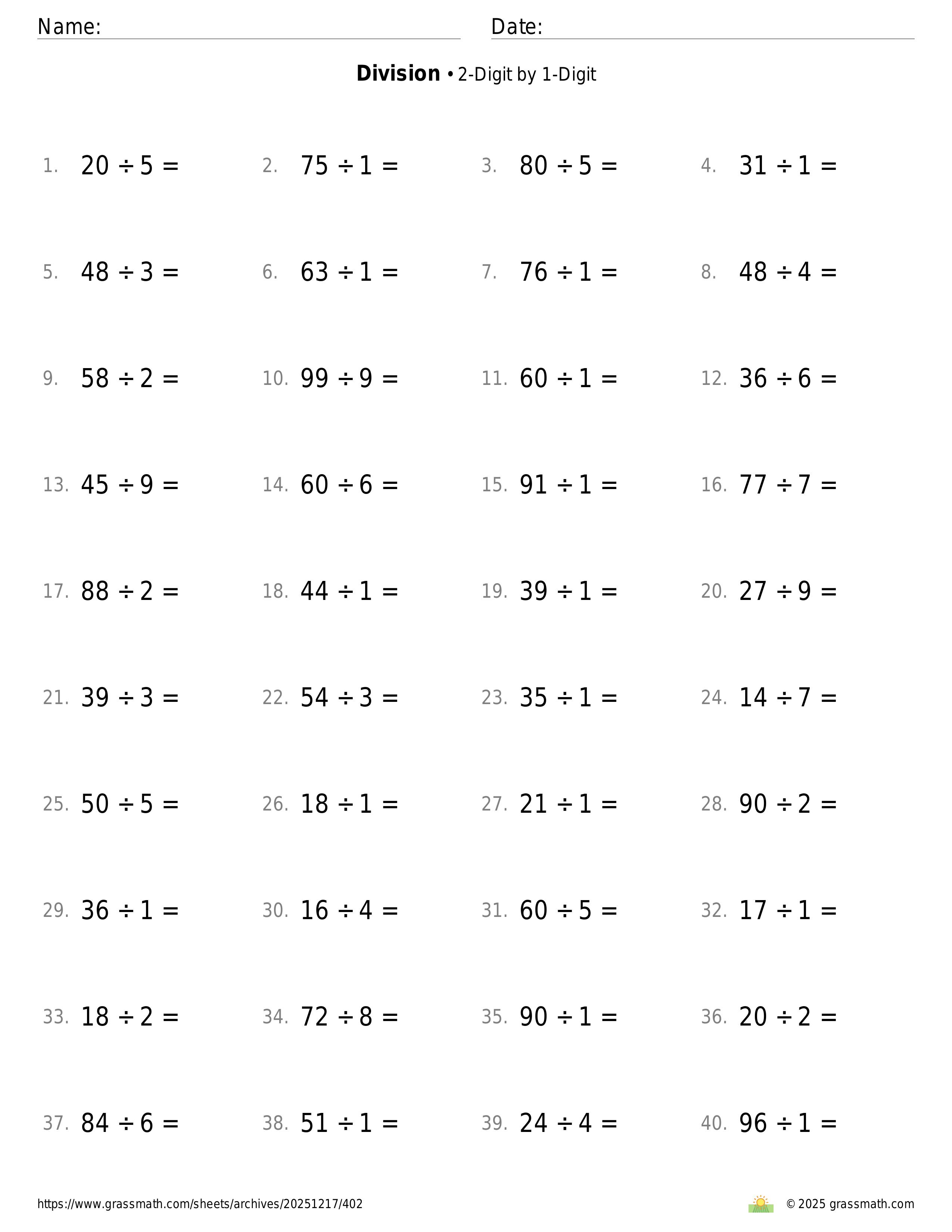 2-Digit by 1-Digit
