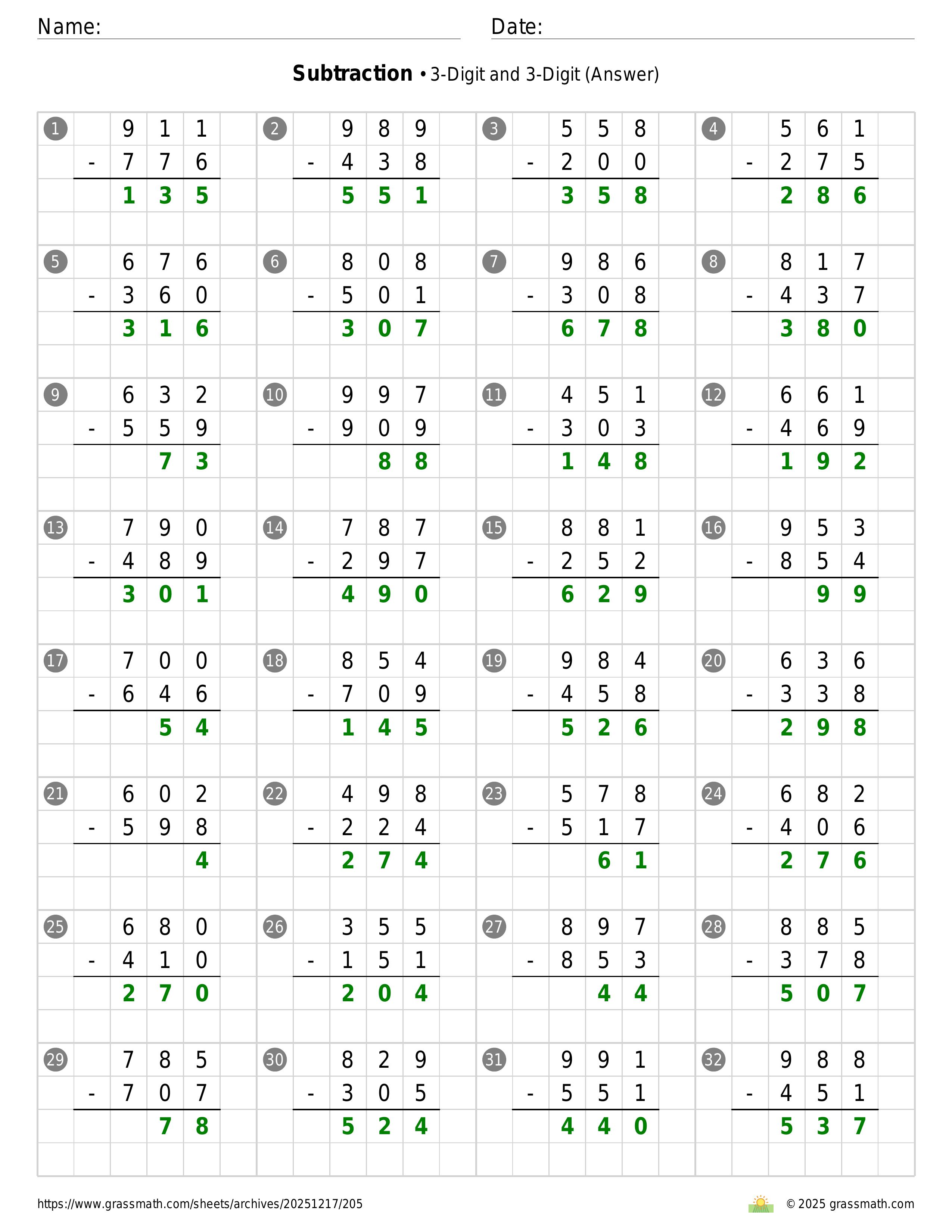 Subtraction 3-Digit and 3-Digit