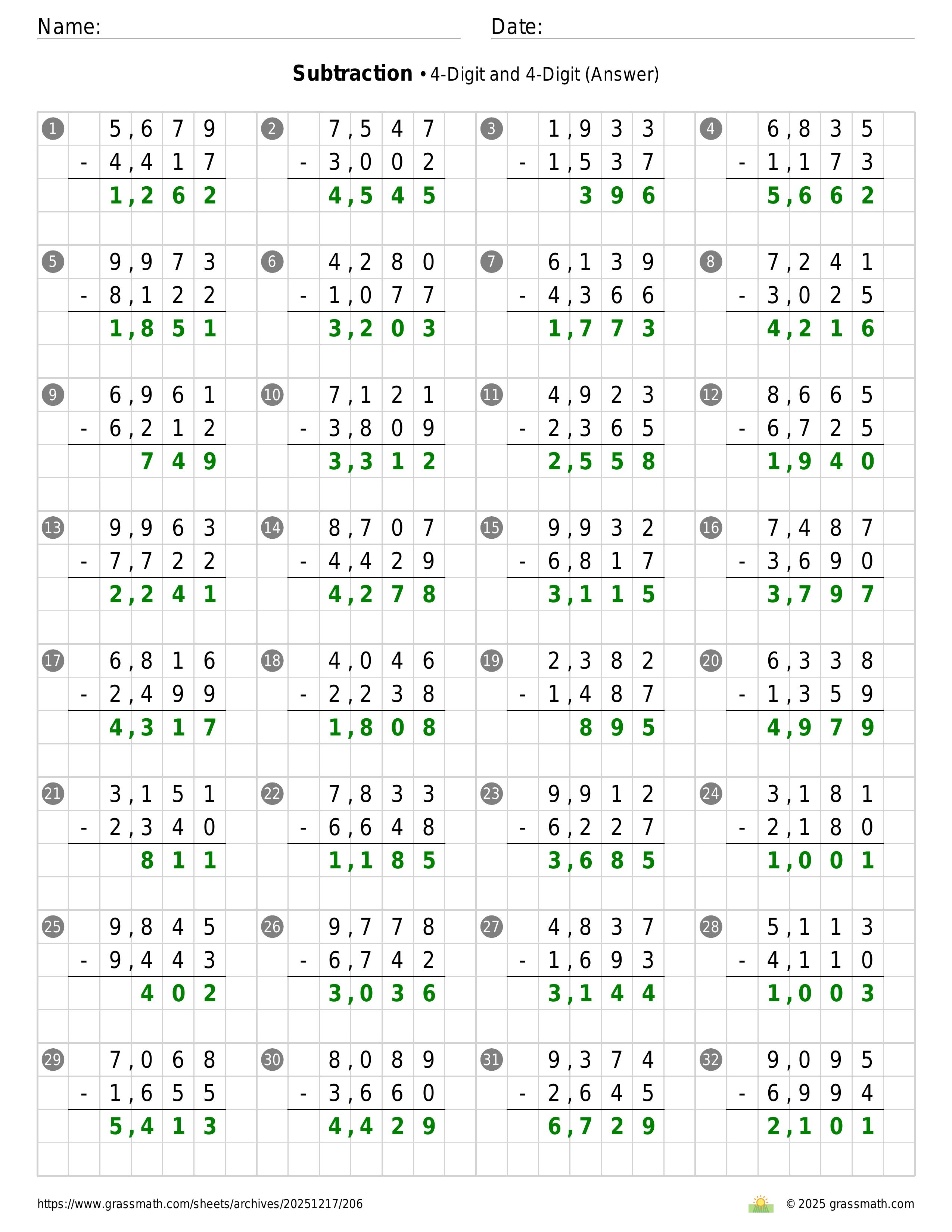 Subtraction 4-Digit and 4-Digit