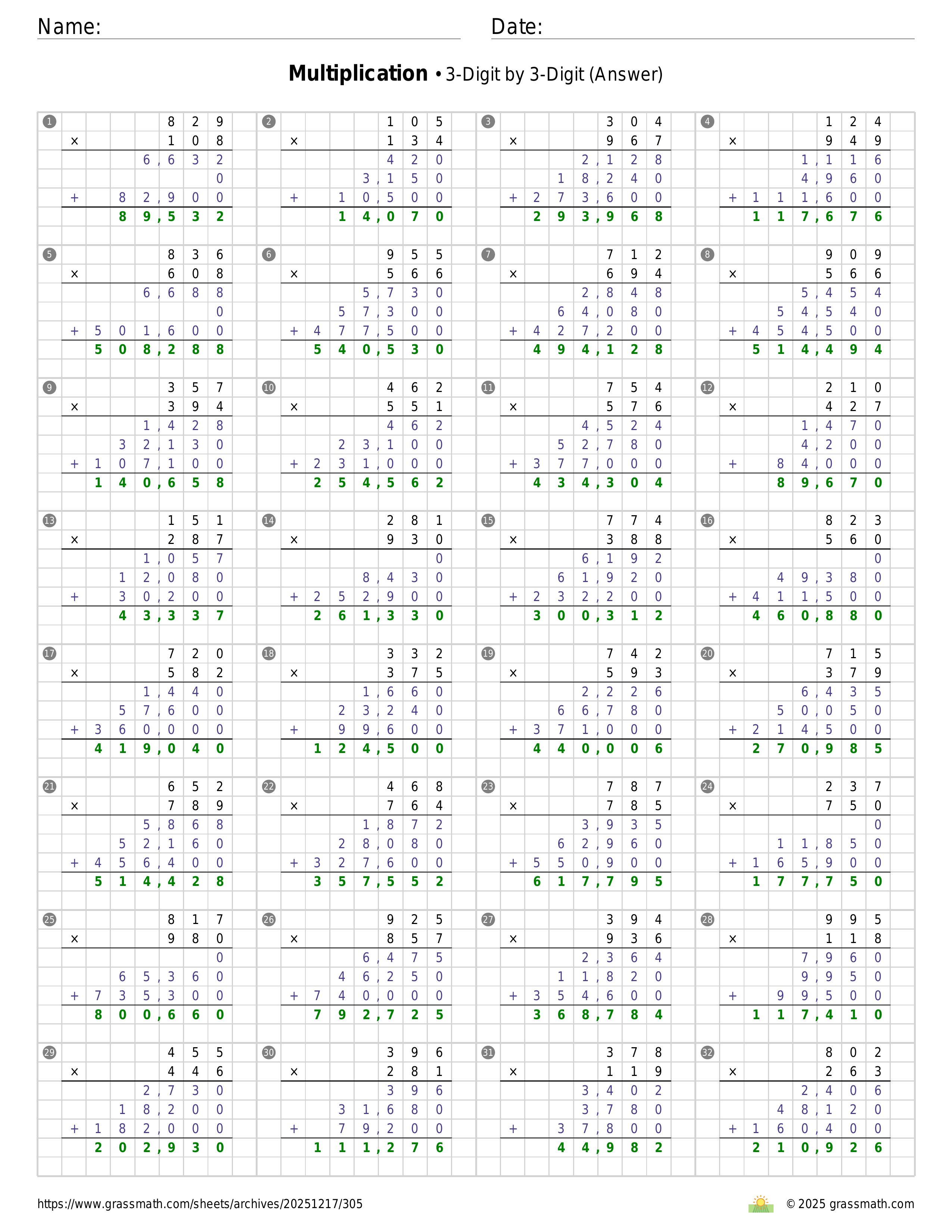 Multiplication 3-Digit by 3-Digit