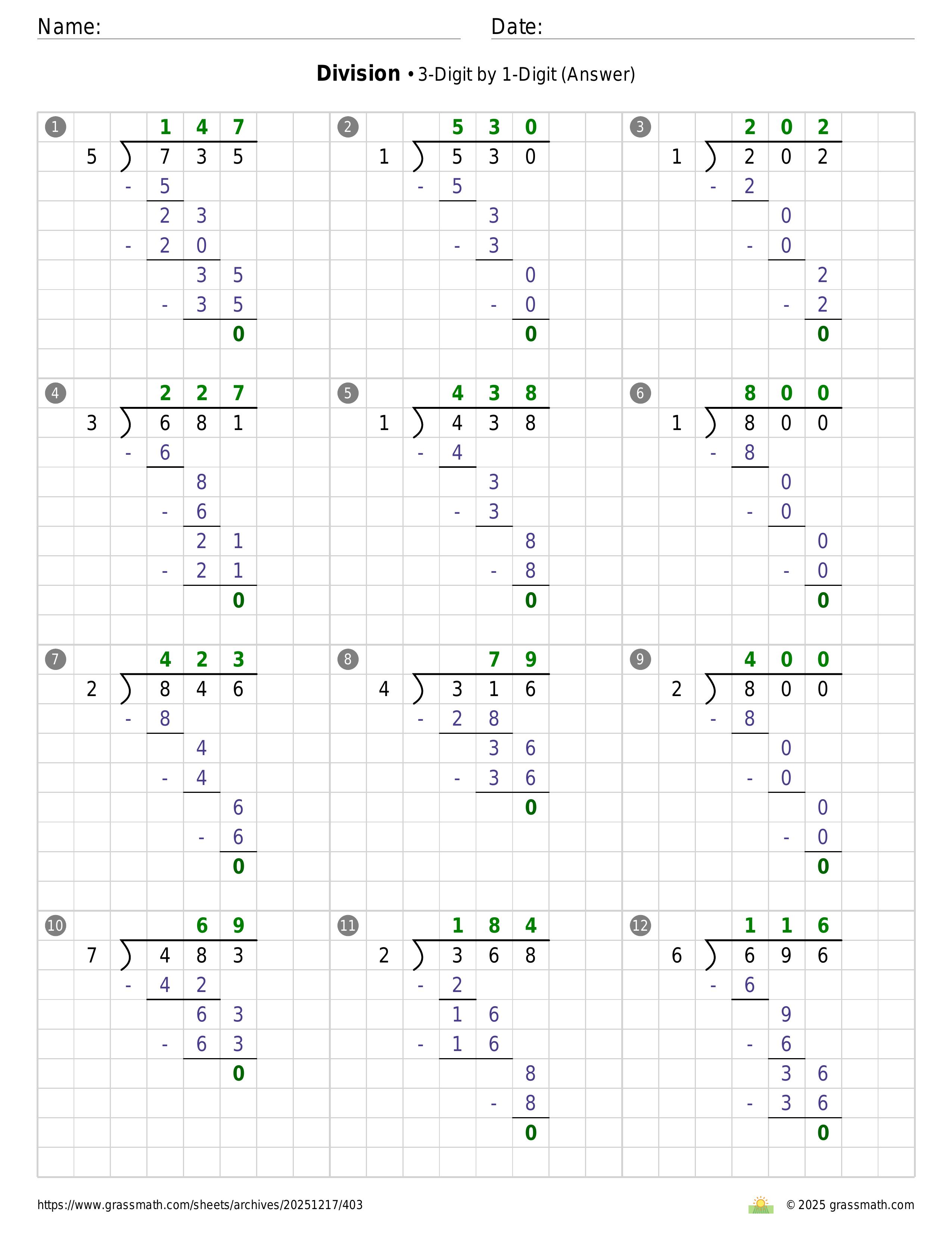 Division 3-Digit by 1-Digit