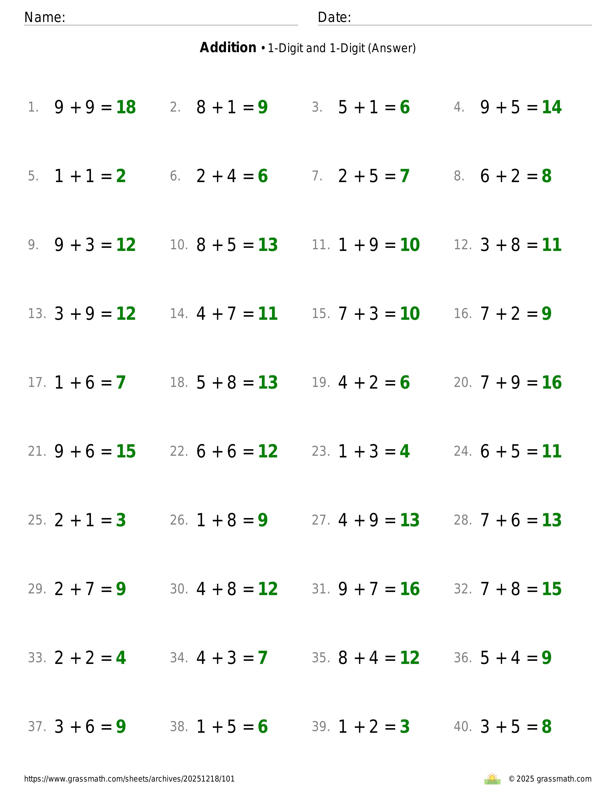 Addition 1-Digit and 1-Digit