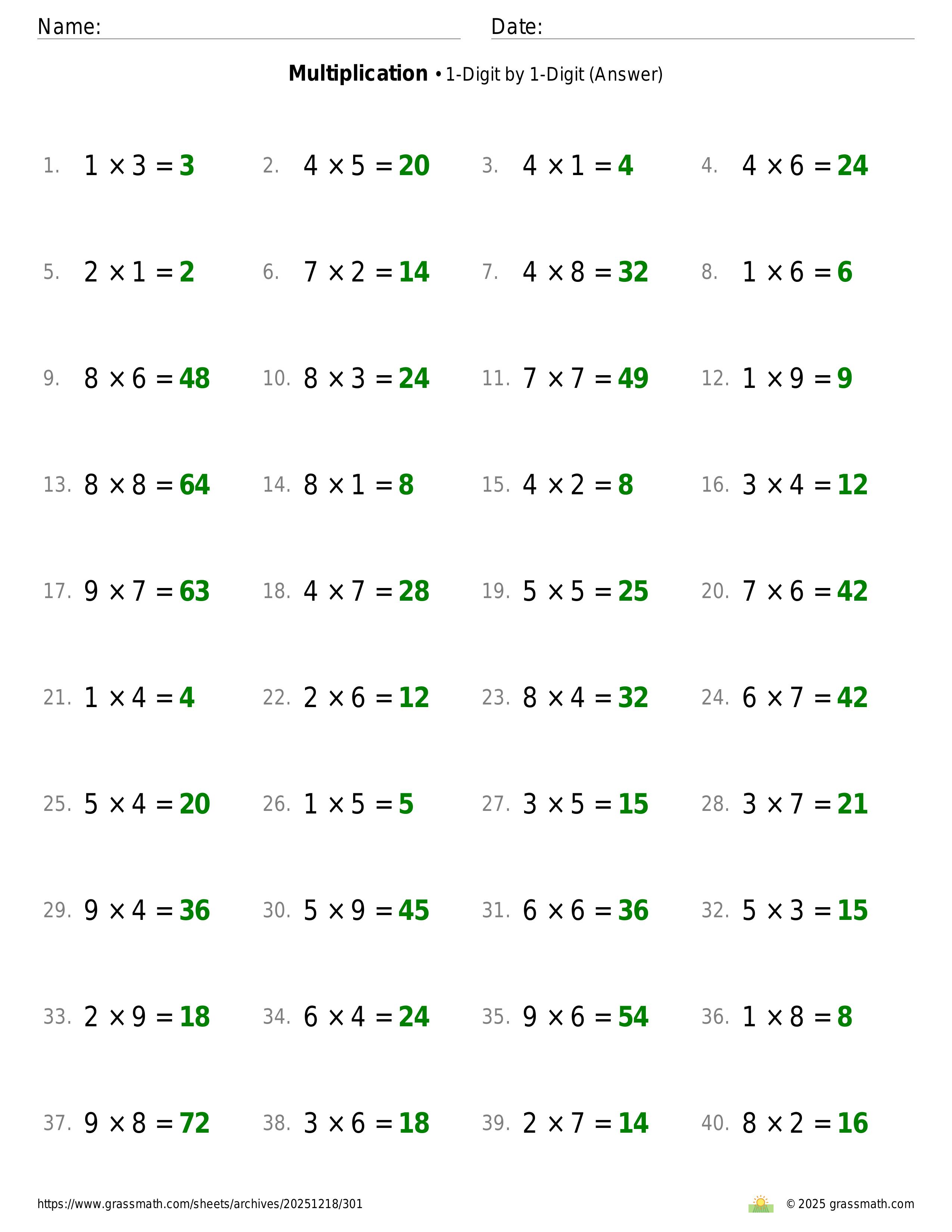 Multiplication 1-Digit by 1-Digit