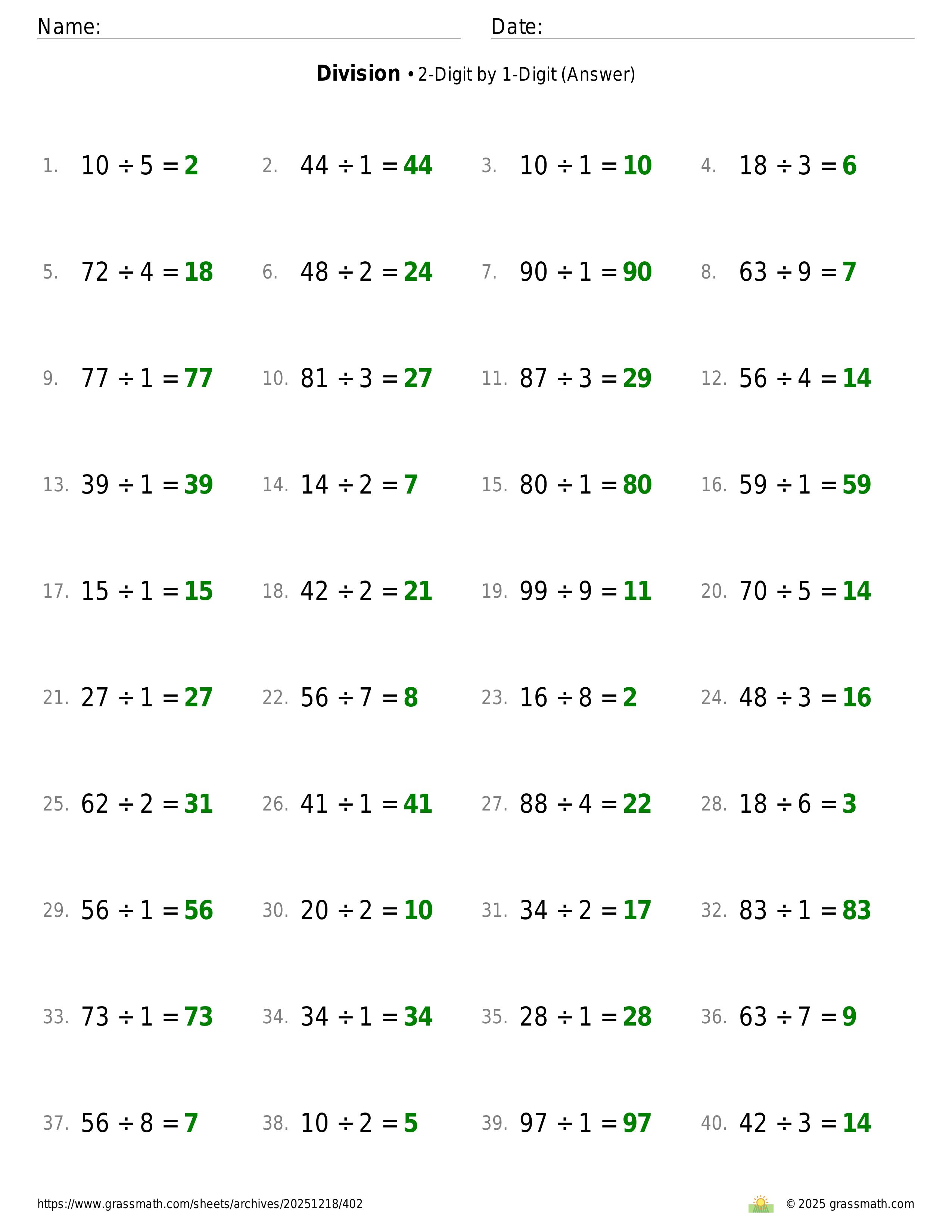 Division 2-Digit by 1-Digit
