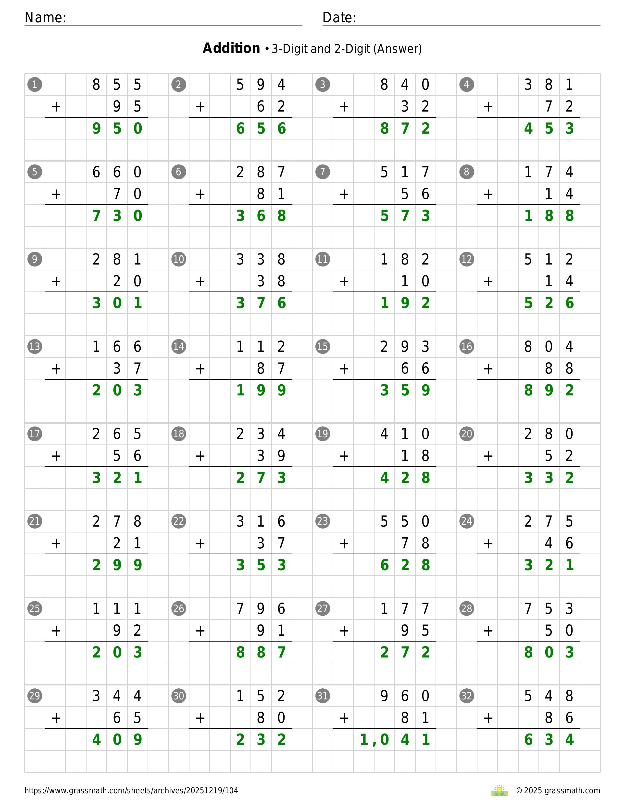 Addition 3-Digit and 2-Digit