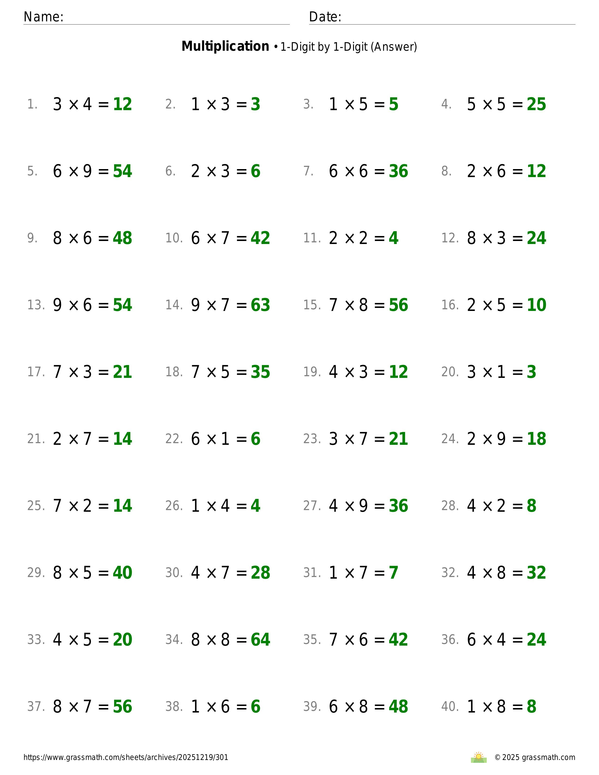 Multiplication 1-Digit by 1-Digit