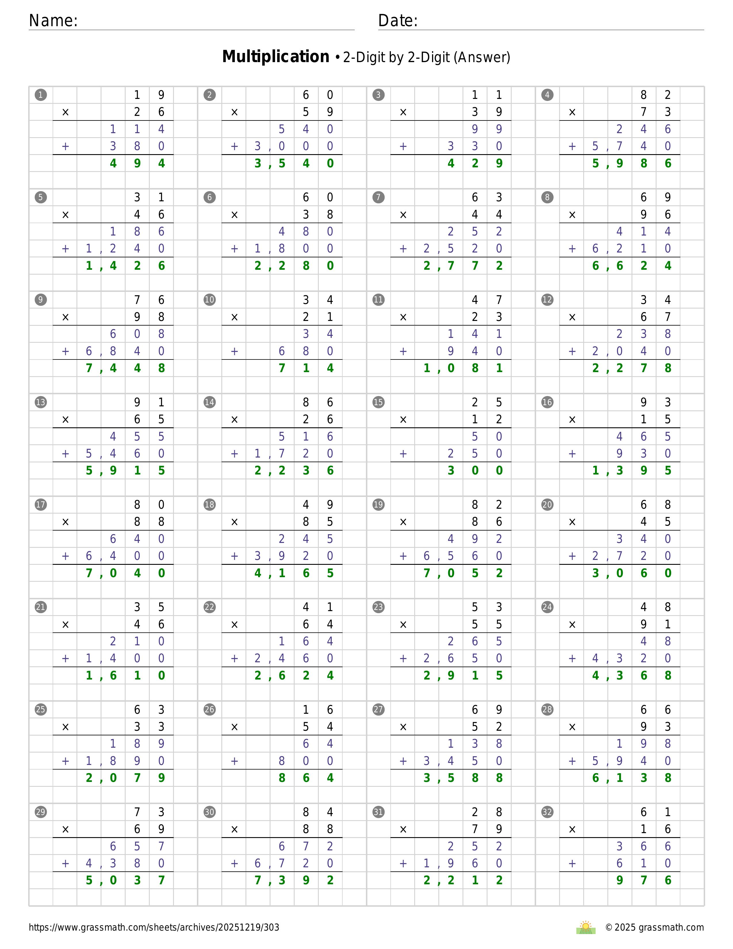 Multiplication 2-Digit by 2-Digit