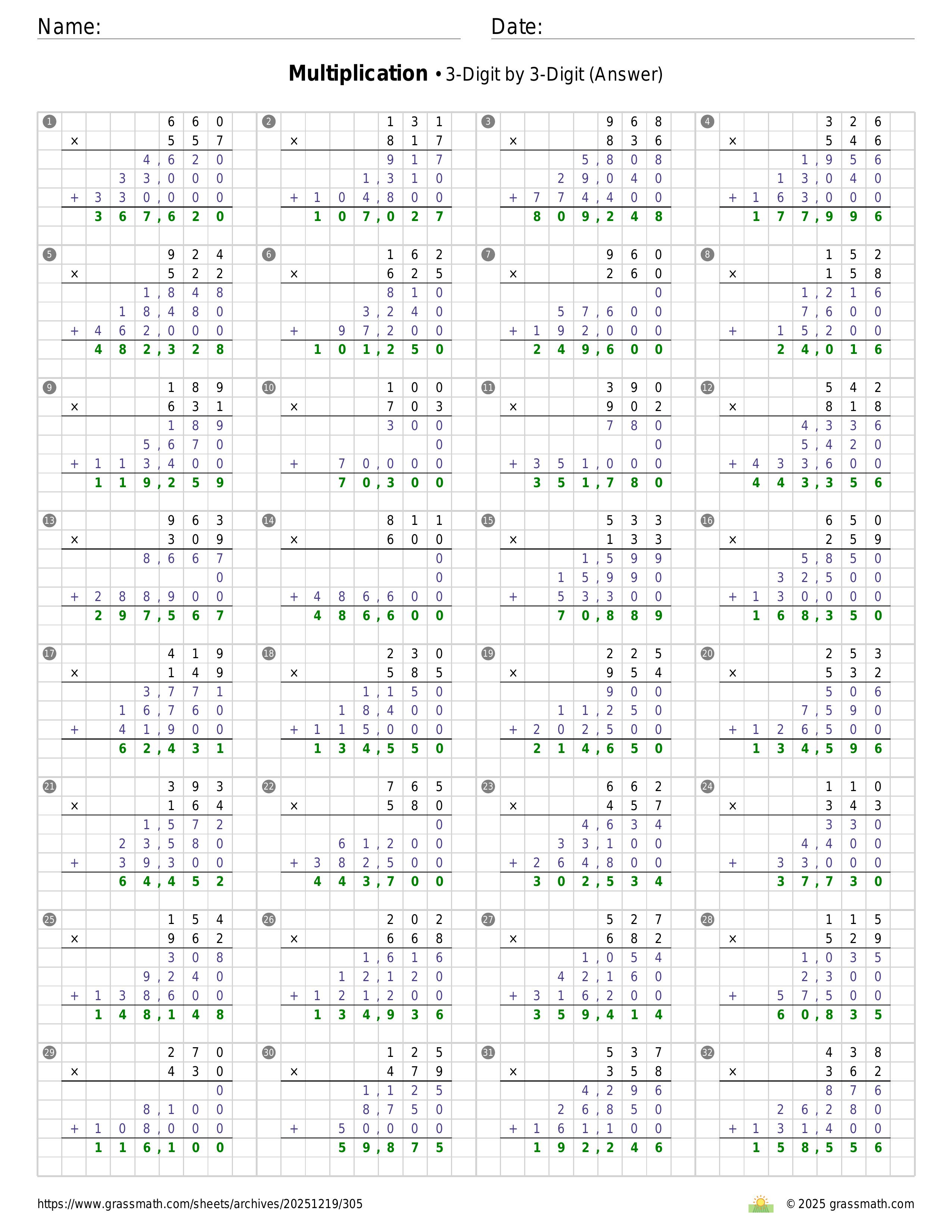 Multiplication 3-Digit by 3-Digit