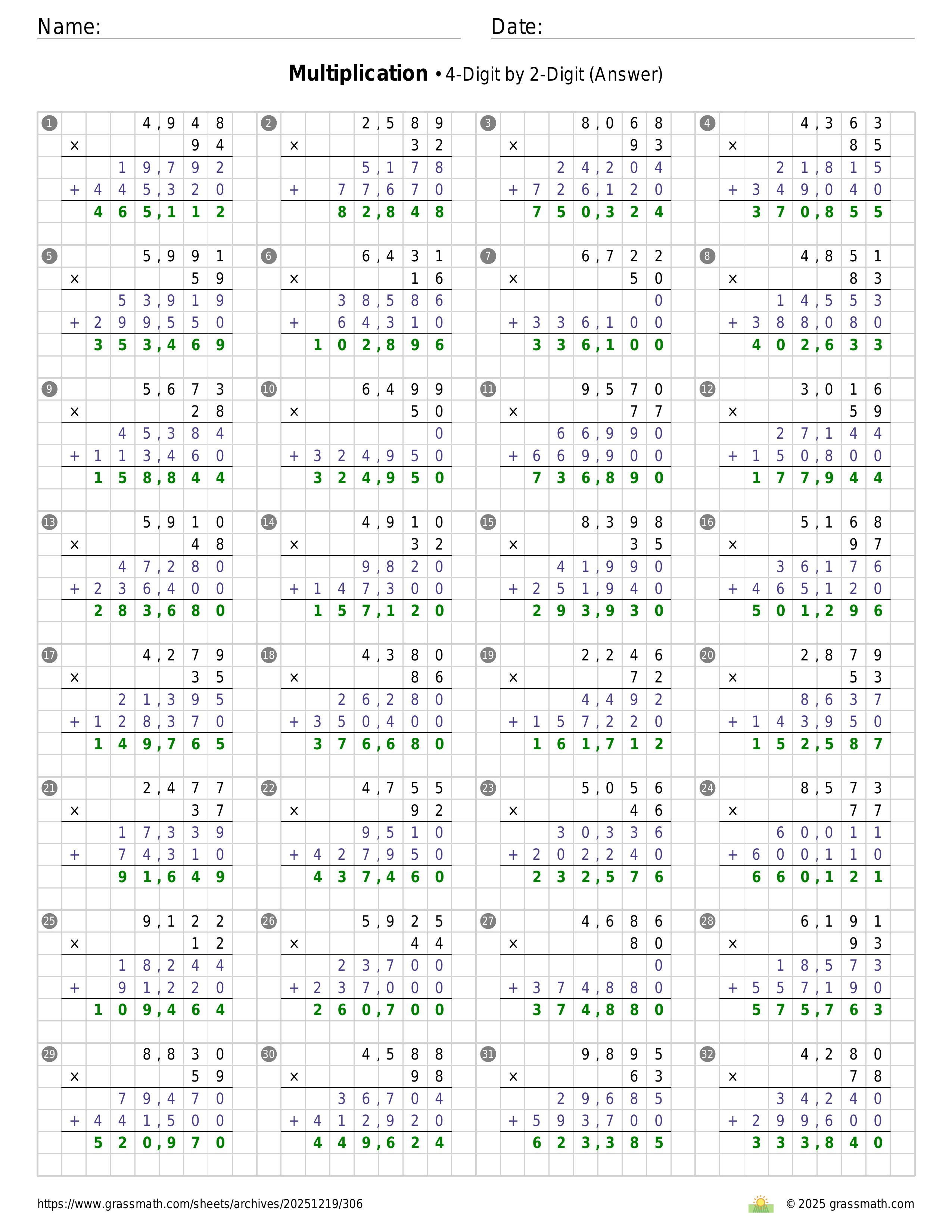 Multiplication 4-Digit by 2-Digit