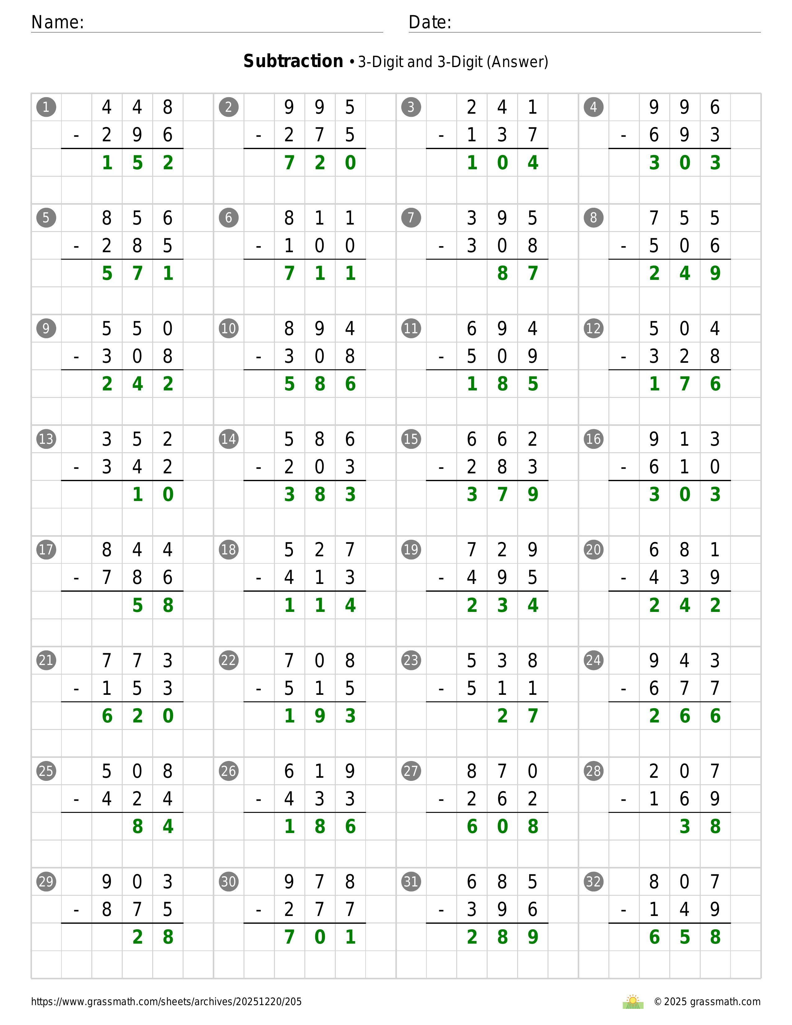 Subtraction 3-Digit and 3-Digit
