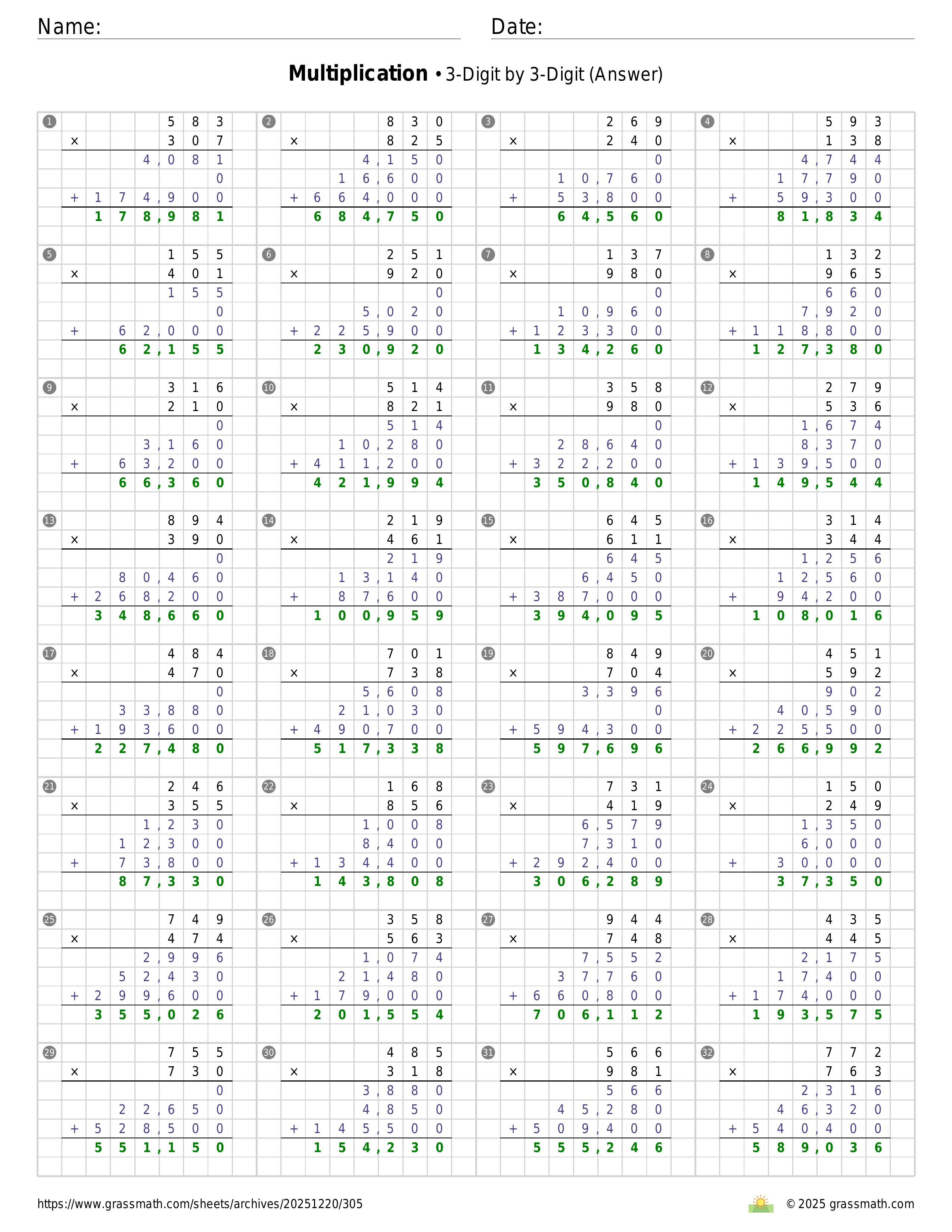 Multiplication 3-Digit by 3-Digit