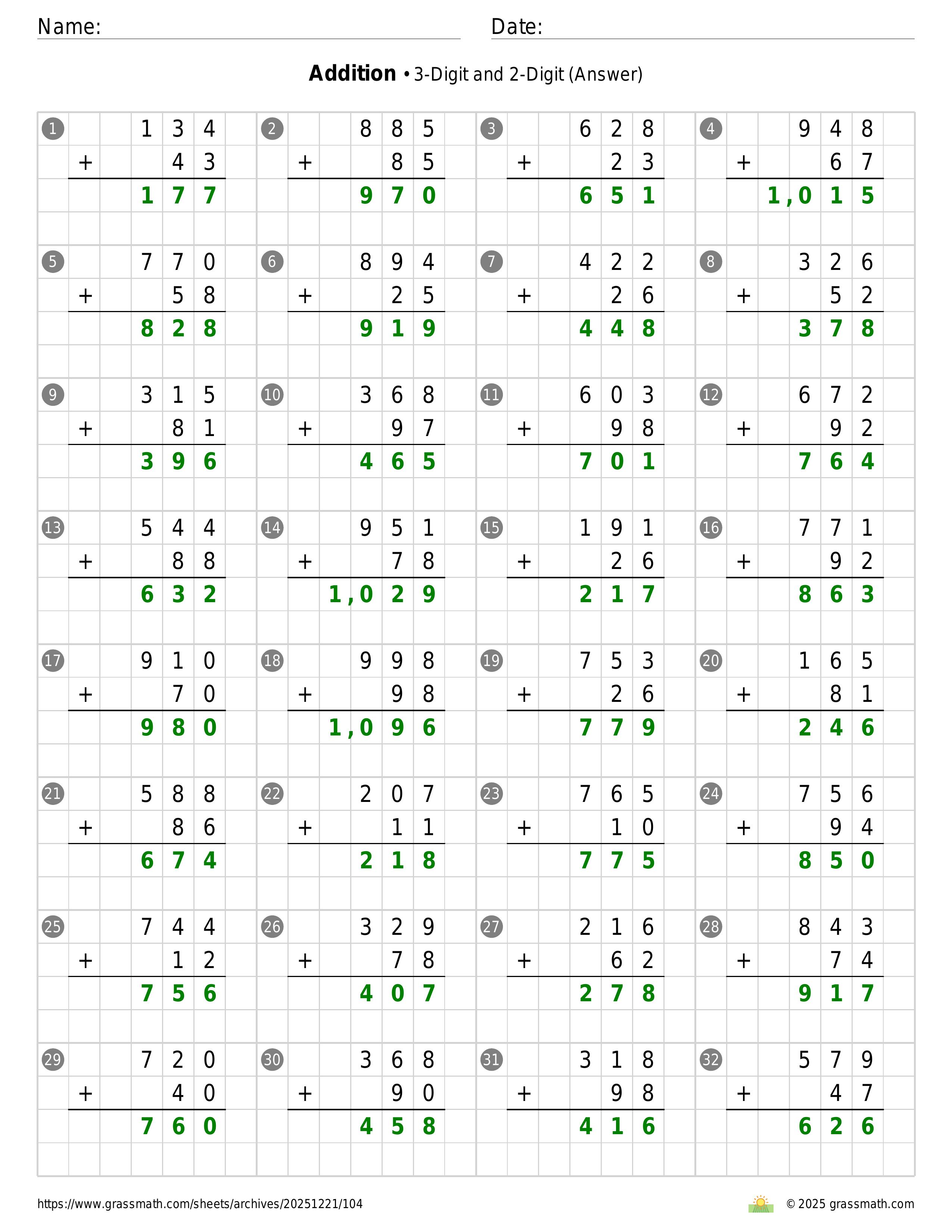 Addition 3-Digit and 2-Digit