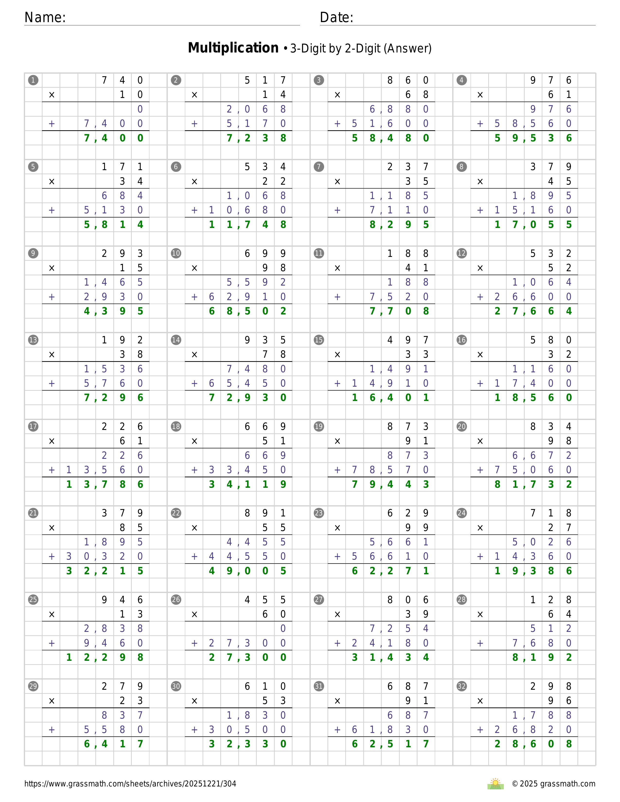 Multiplication 3-Digit by 2-Digit