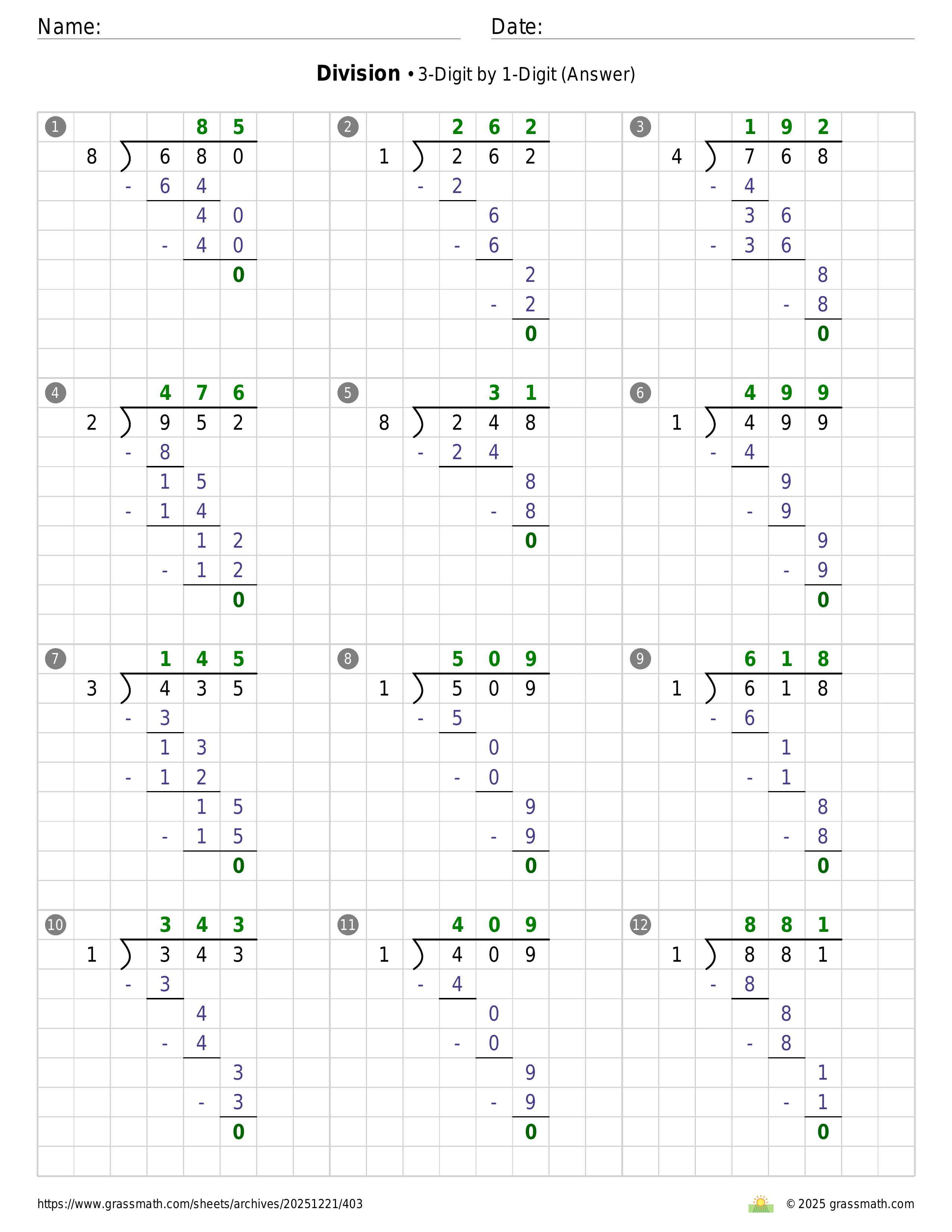 Division 3-Digit by 1-Digit