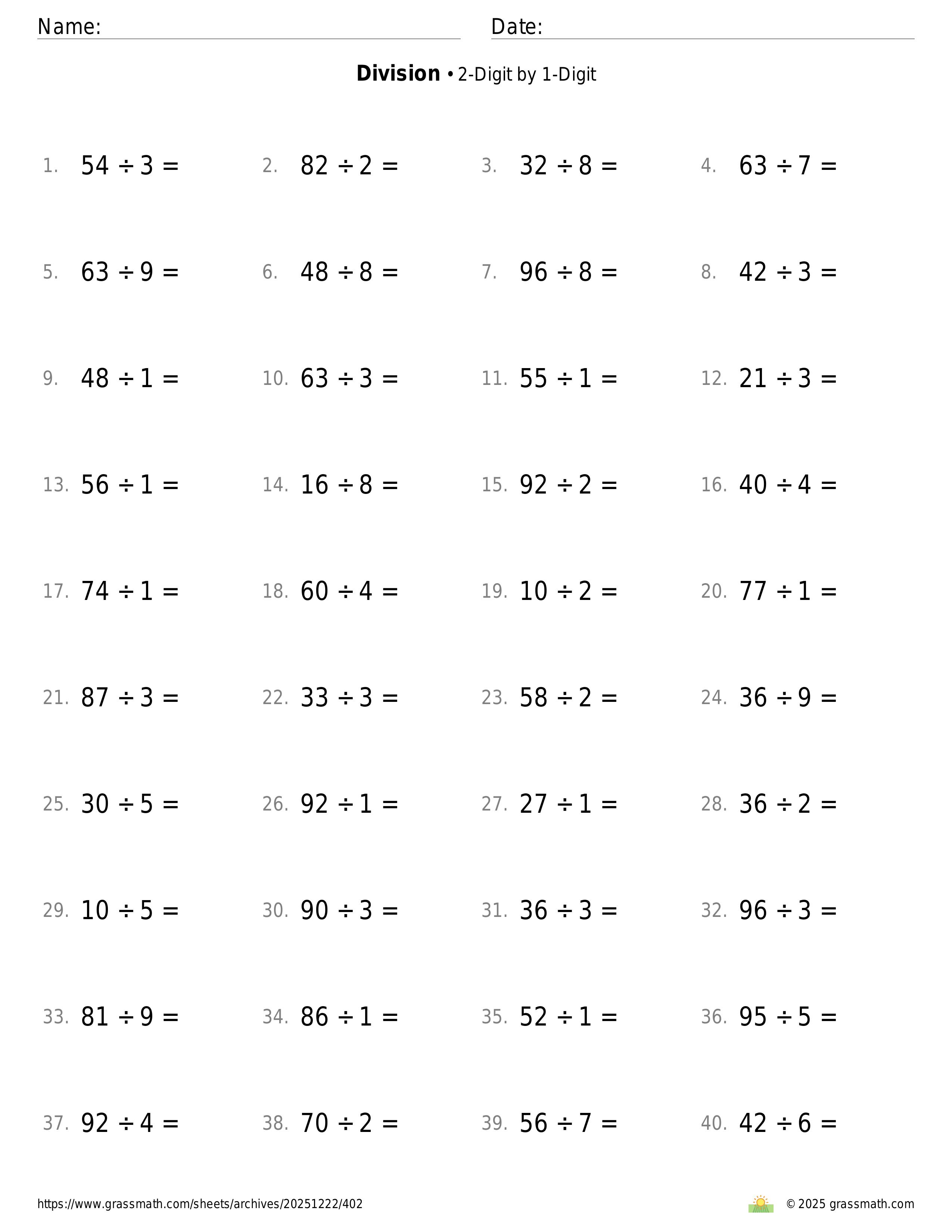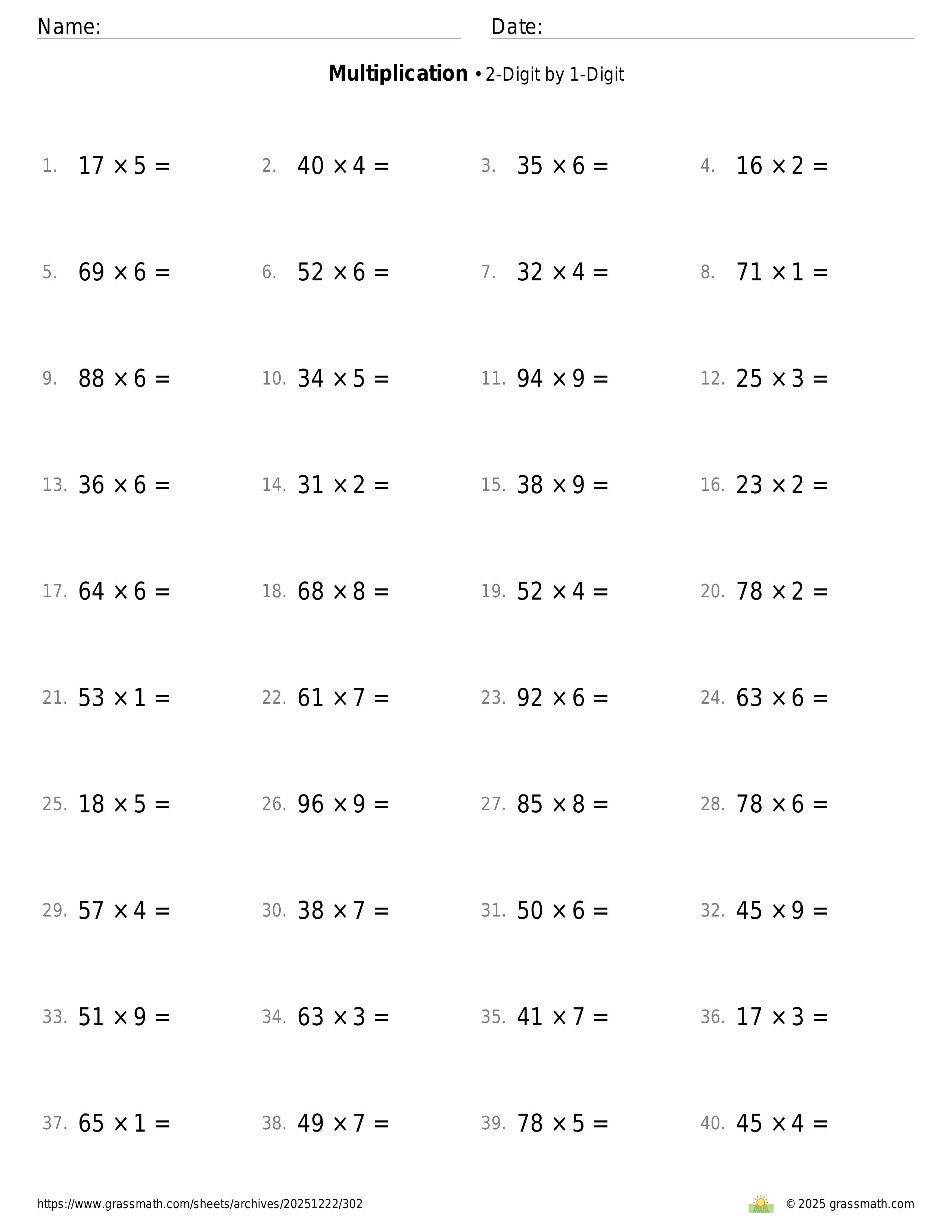 2-Digit by 1-Digit