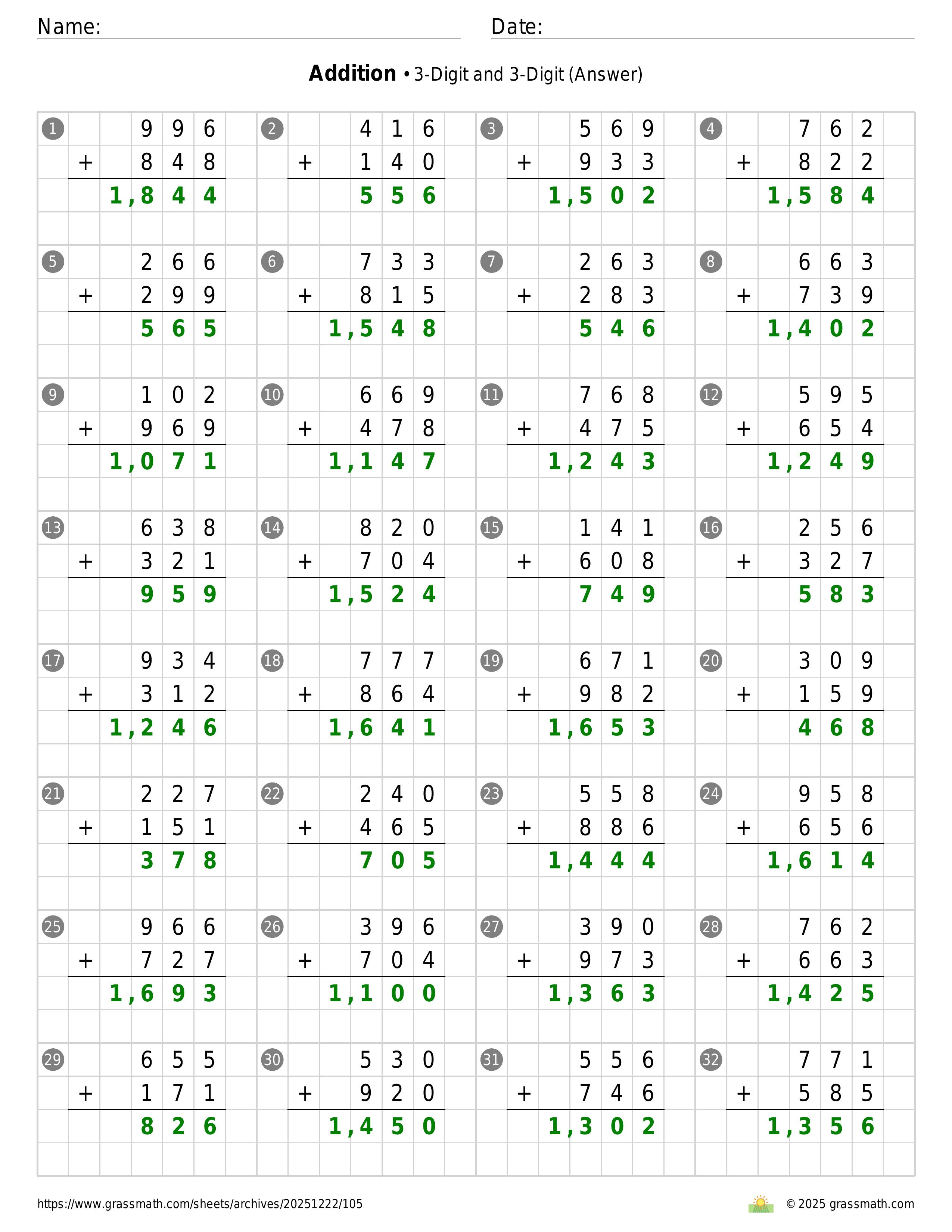 Addition 3-Digit and 3-Digit