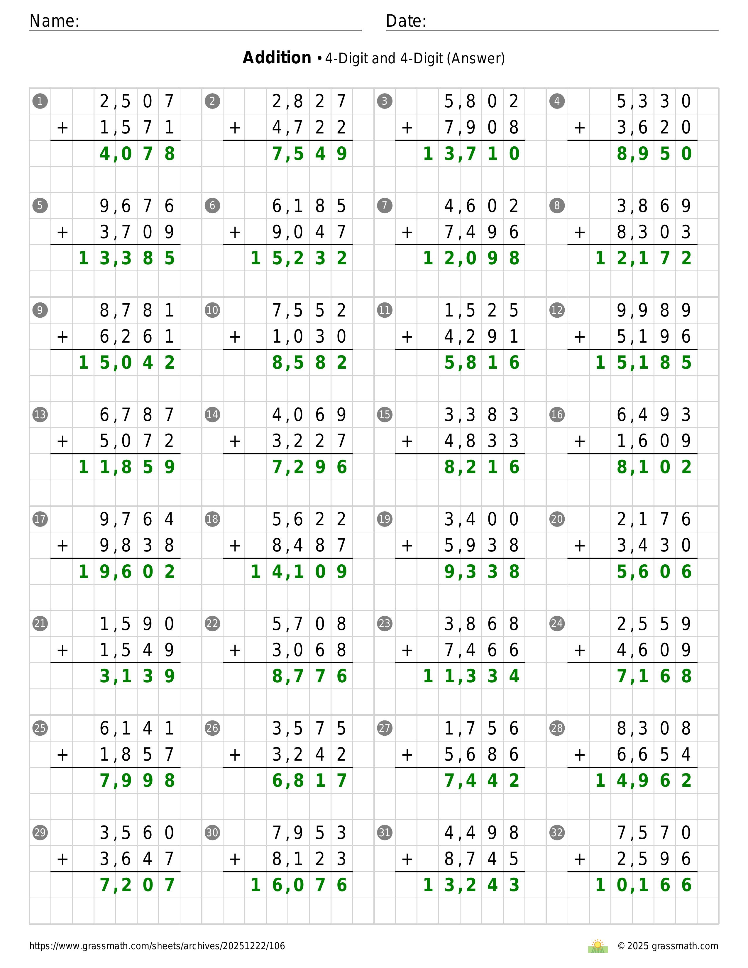 Addition 4-Digit and 4-Digit