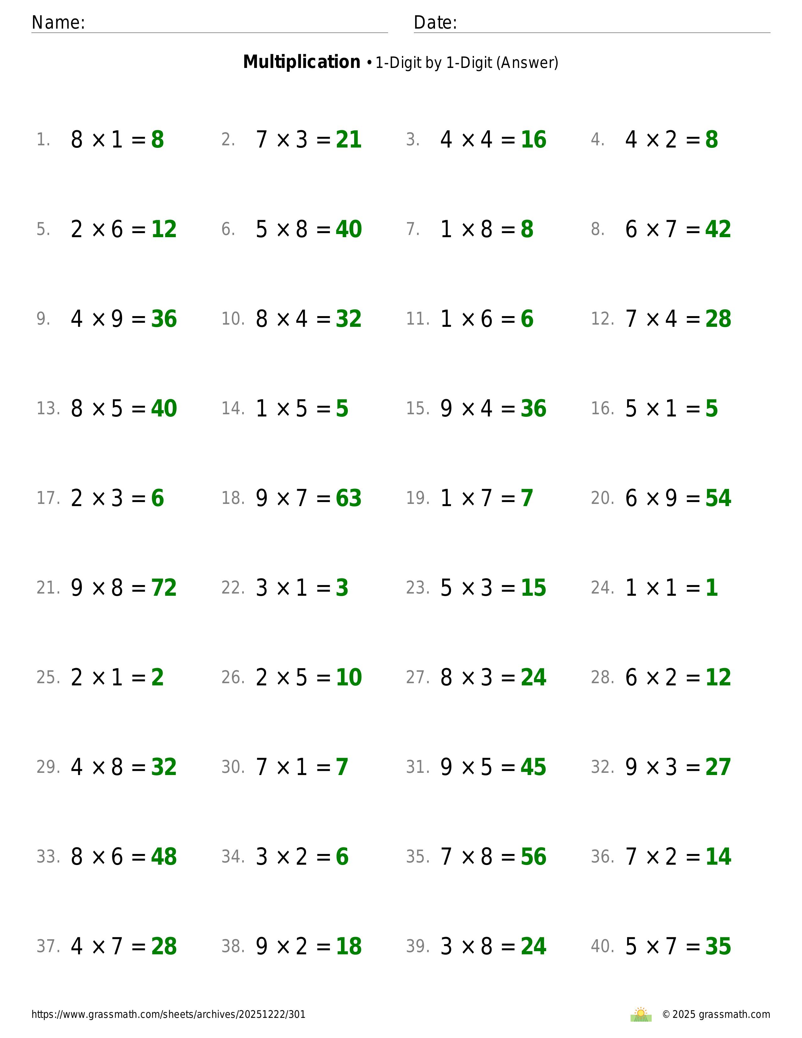 Multiplication 1-Digit by 1-Digit