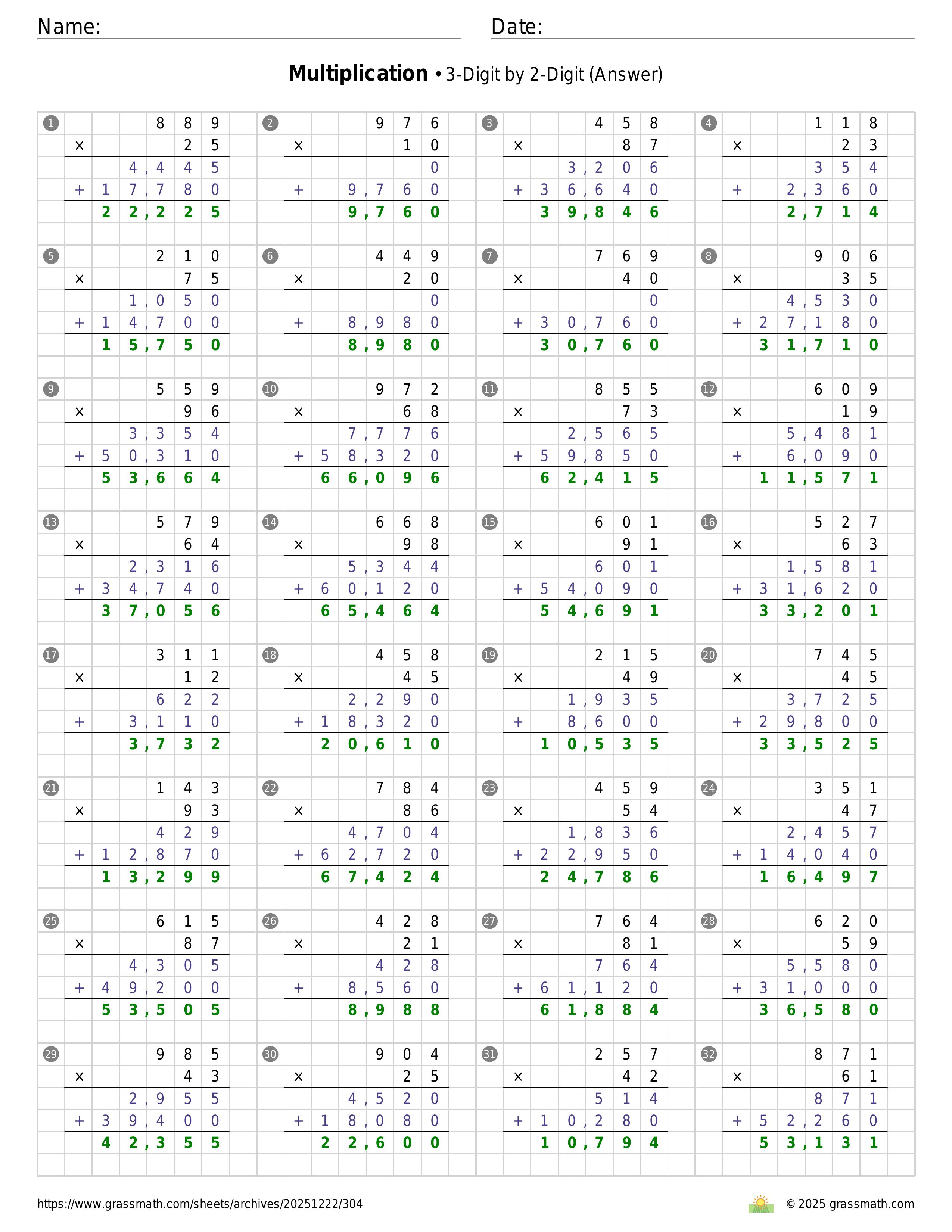 Multiplication 3-Digit by 2-Digit