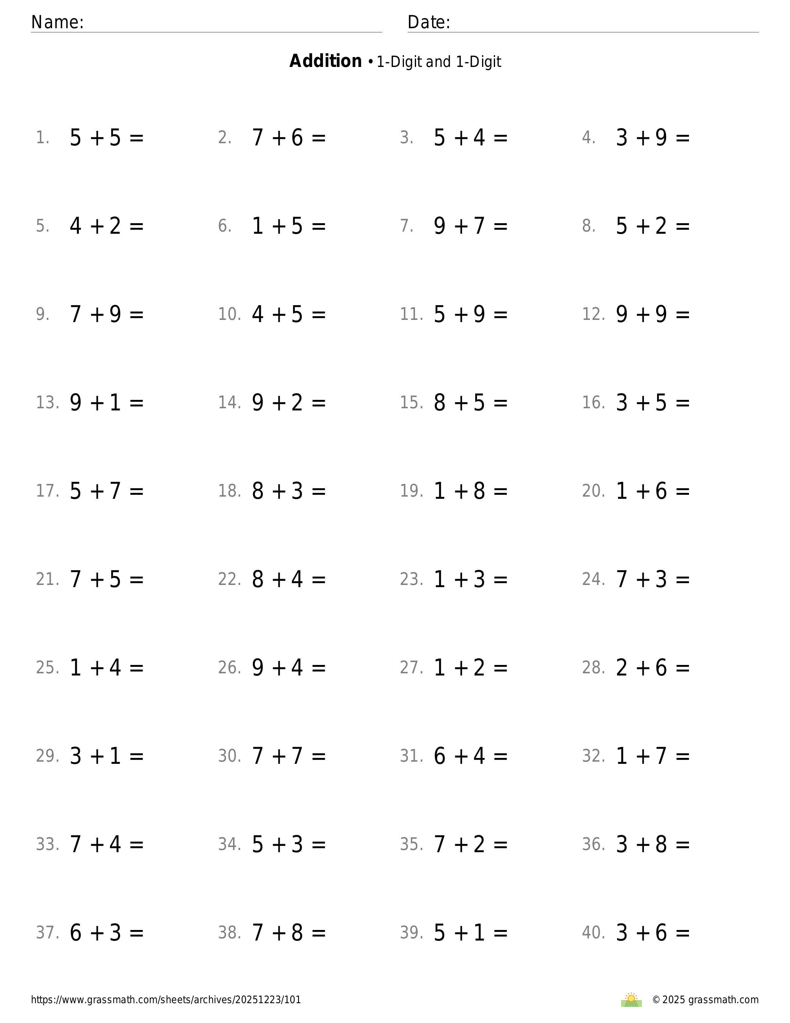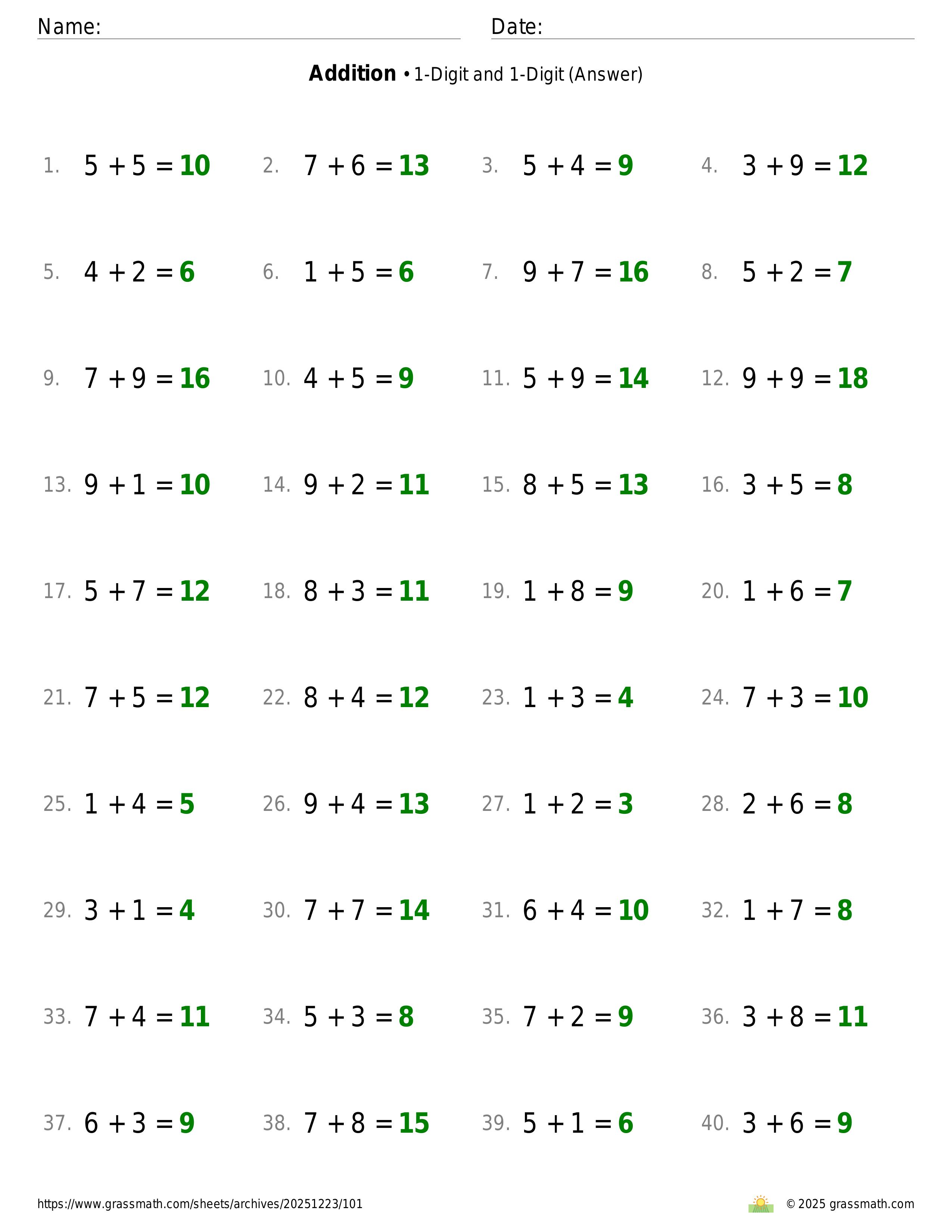 Addition 1-Digit and 1-Digit
