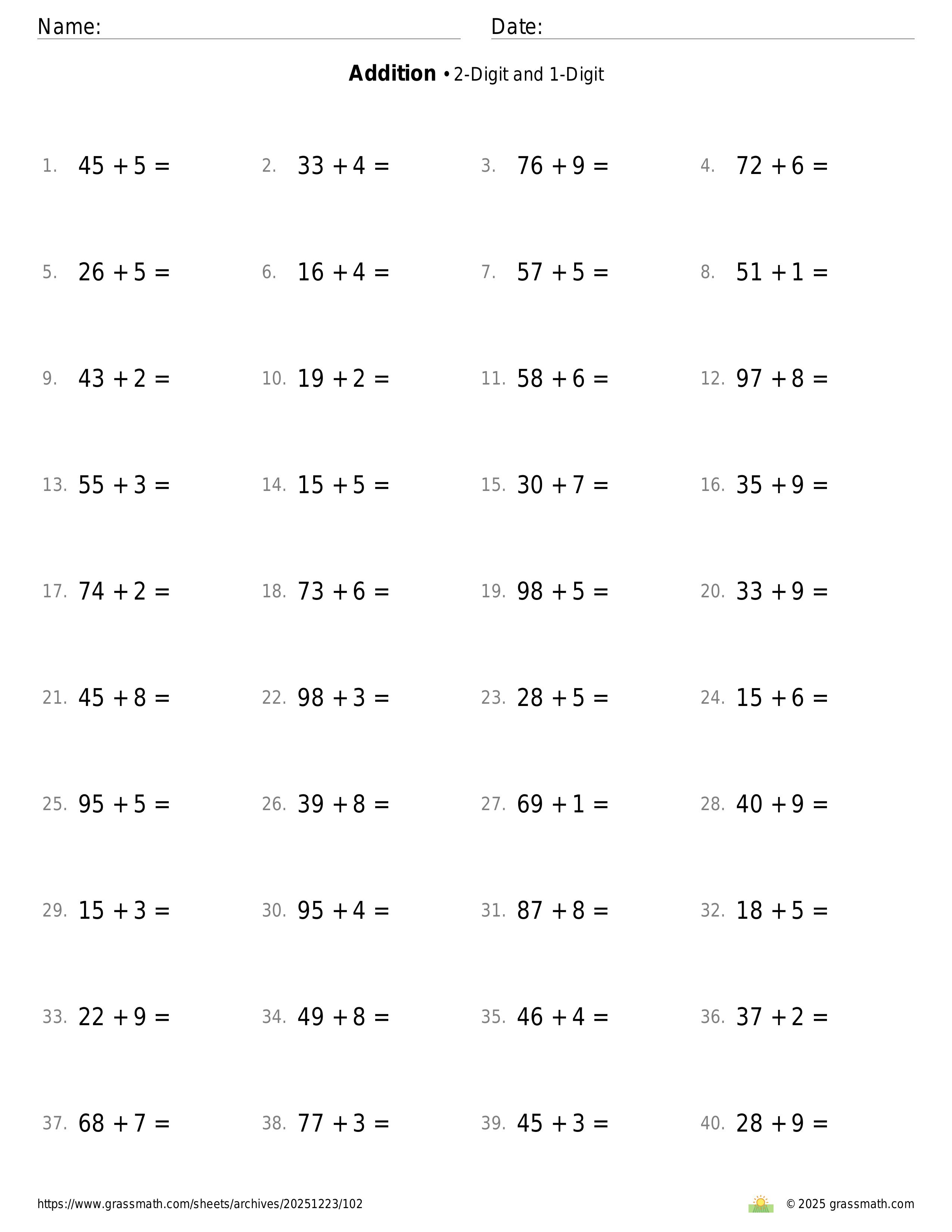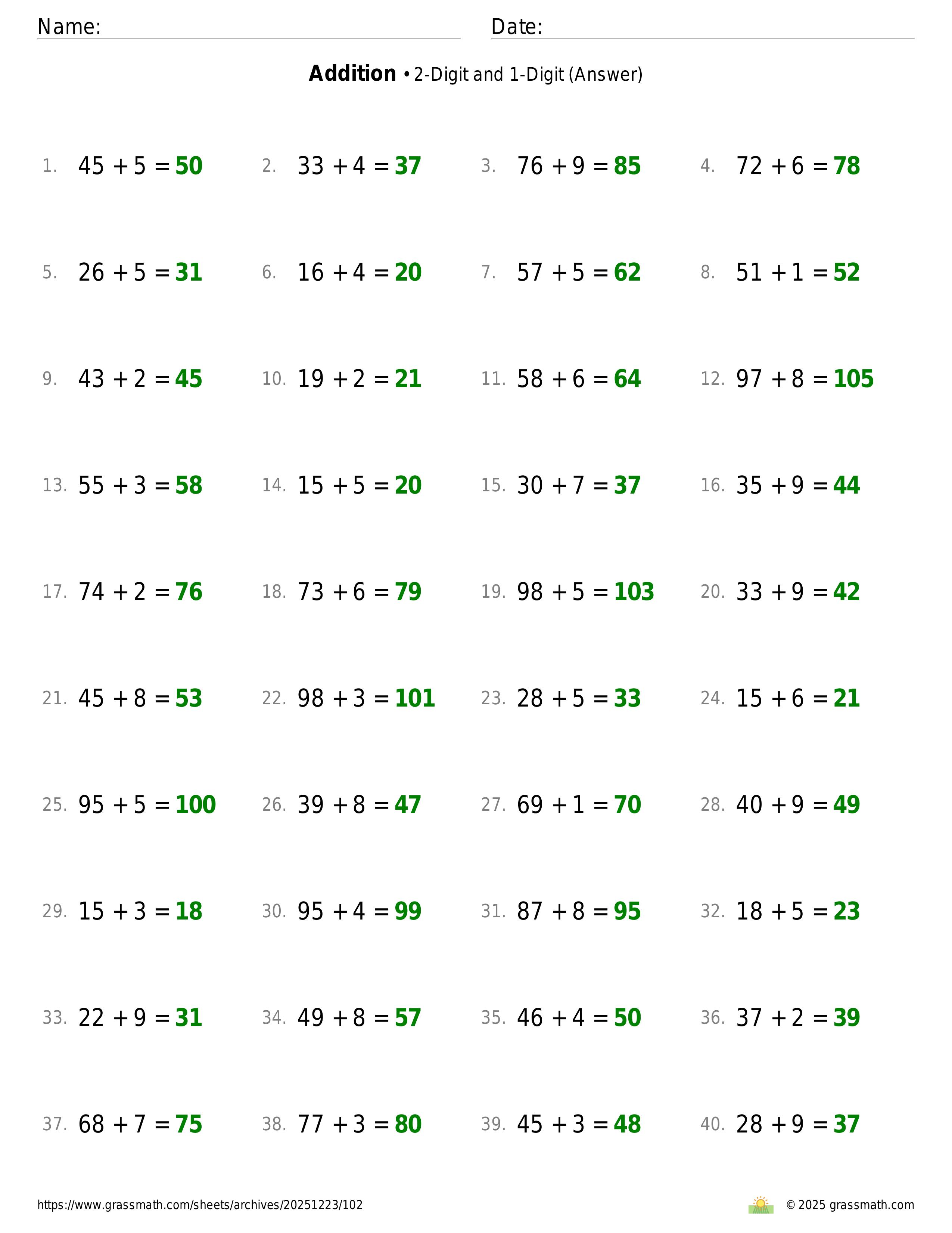Addition 2-Digit and 1-Digit