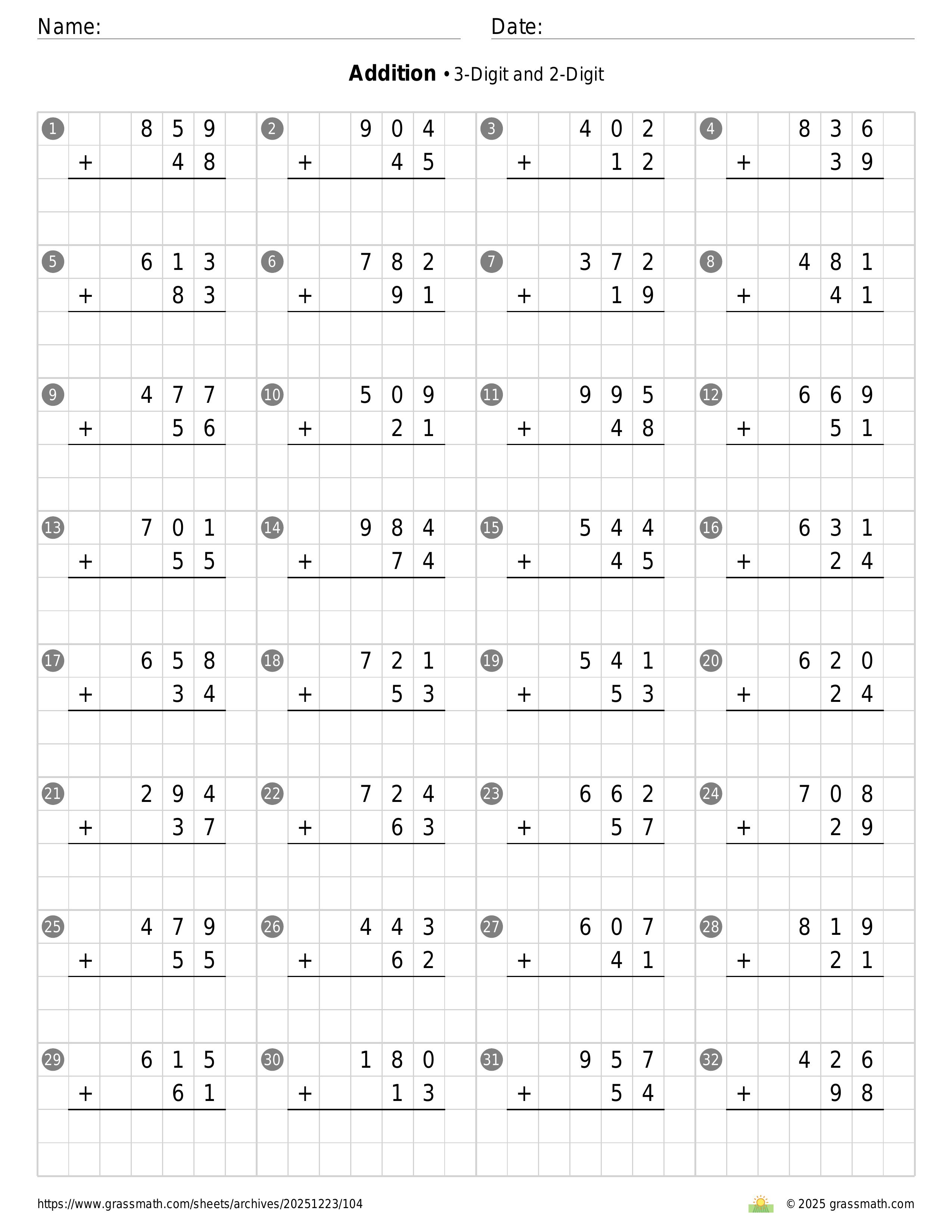Addition 3-Digit and 2-Digit