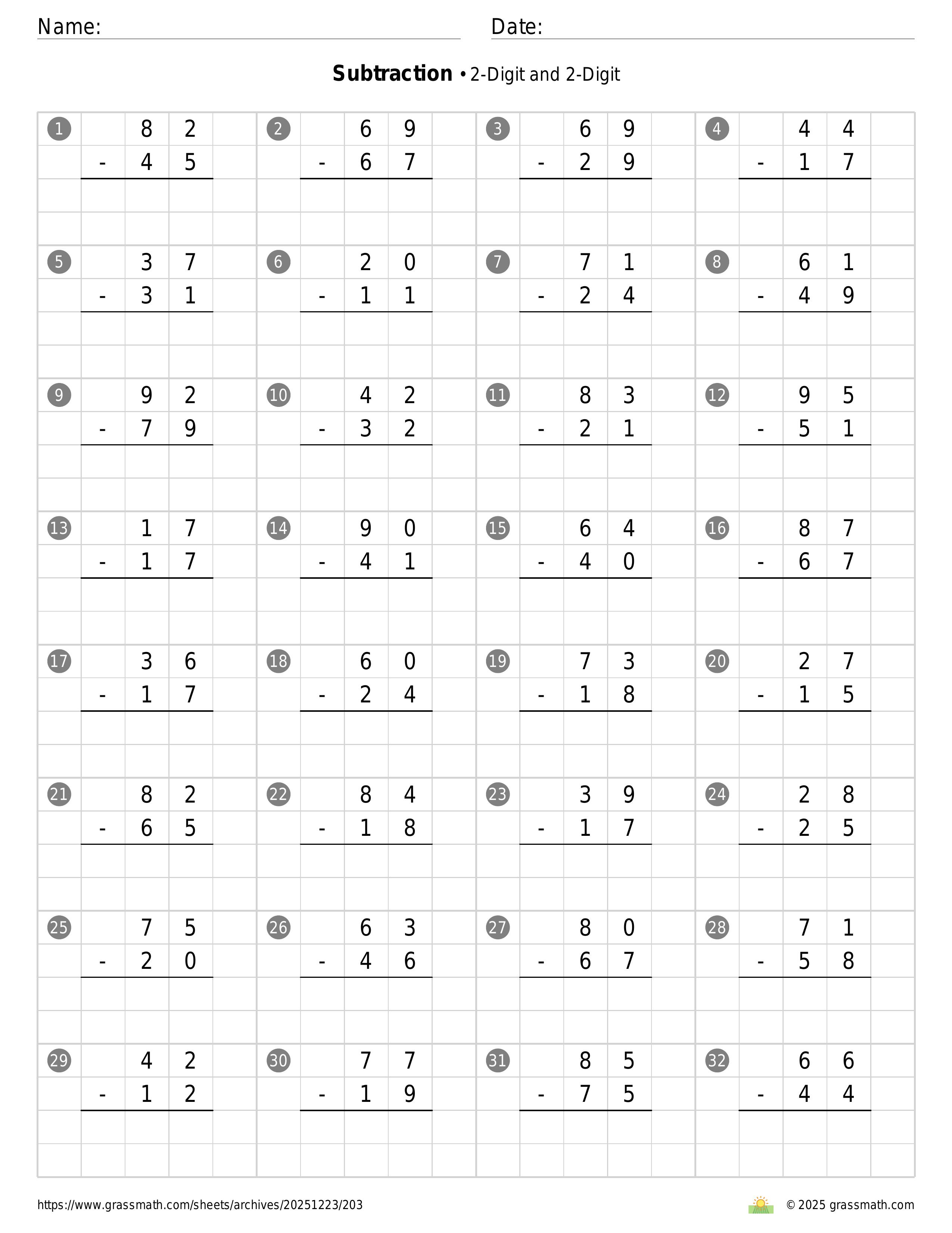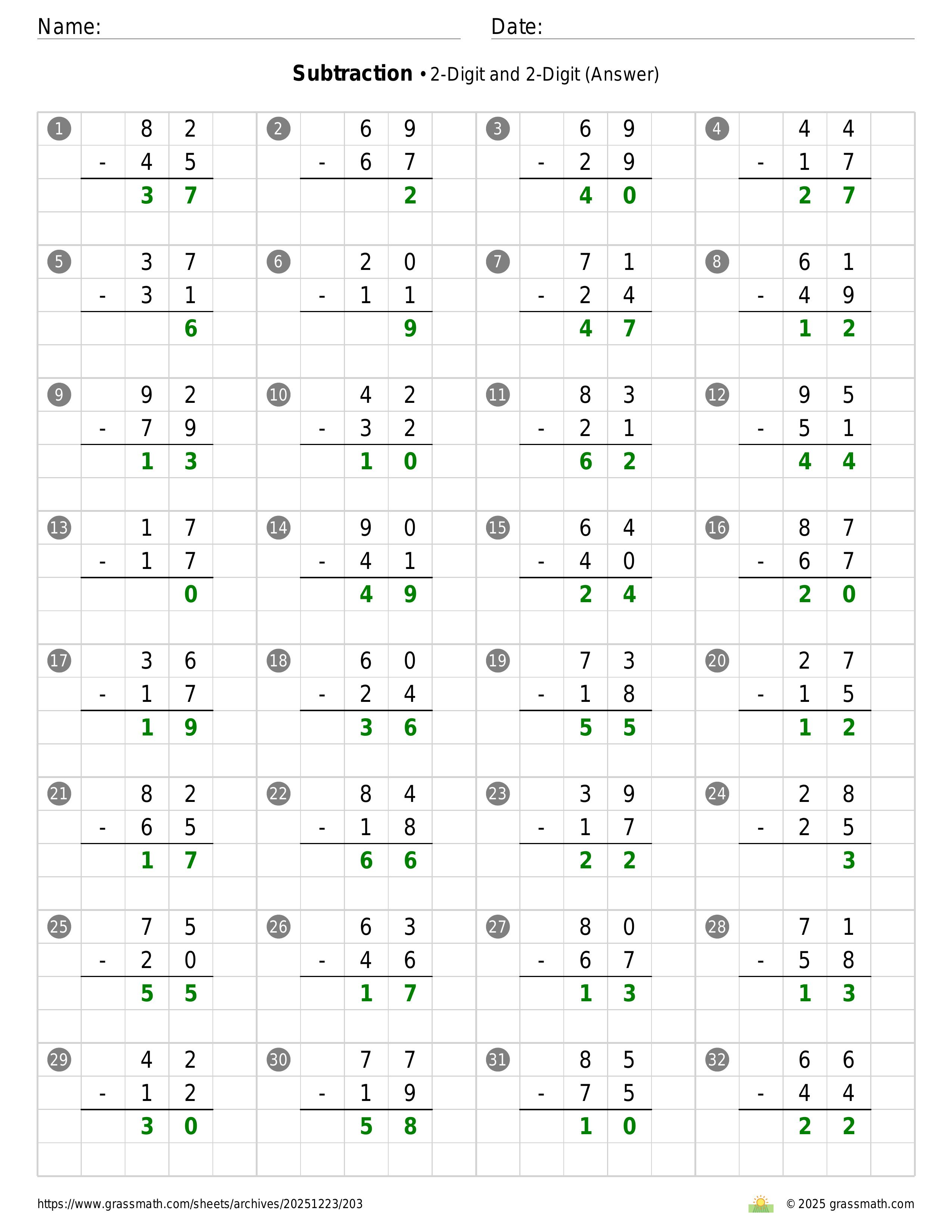 Subtraction 2-Digit and 2-Digit
