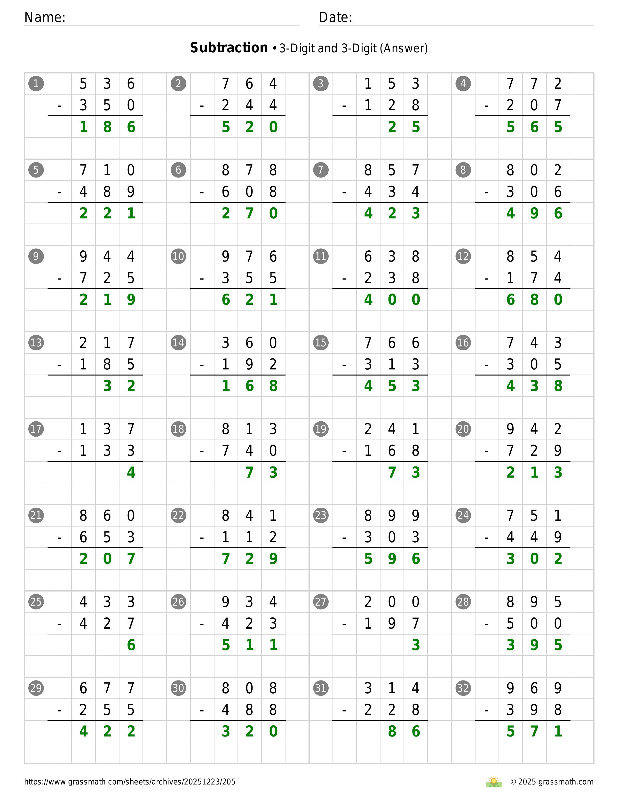 Subtraction 3-Digit and 3-Digit